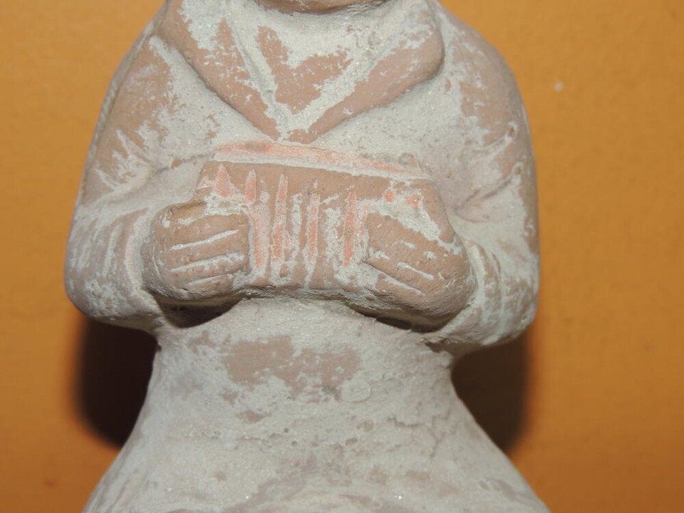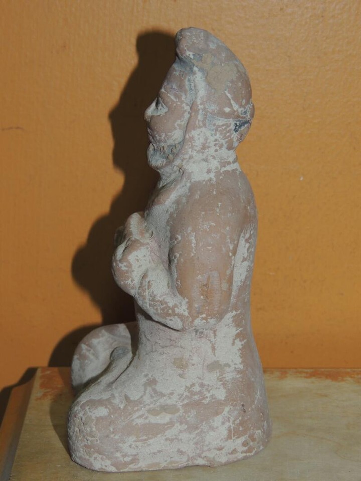 - Chinese Terracotta Mud Man Sitting 5.5" Sancai unglazed red black orange mudman