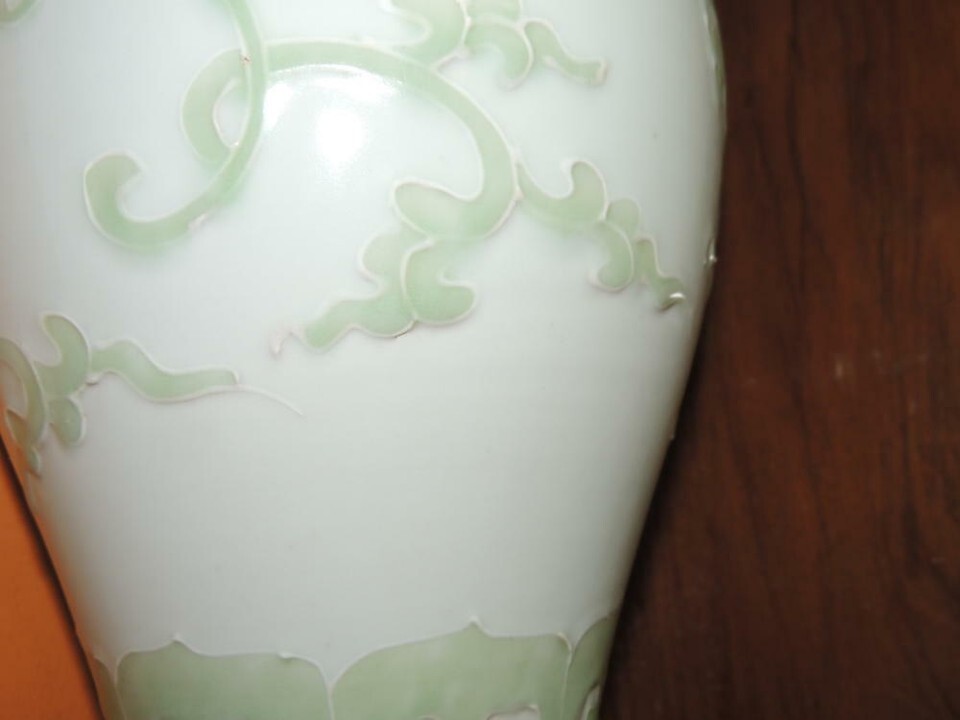 - Chinese Vase 14.5" pale Celadon glaze raised 5-toed dragon mark poss Daoguang