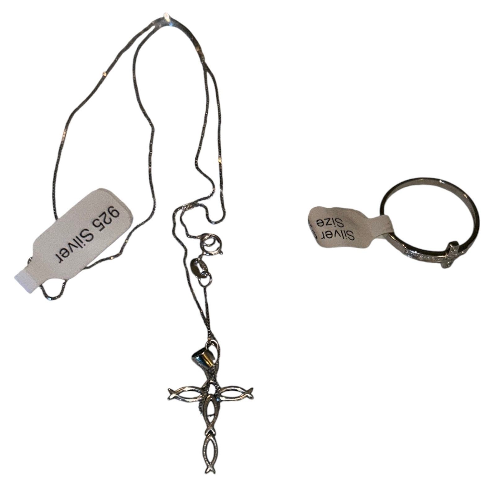 - Christian Jewelry .925 Sterling Silver Cross Necklace and Size 11 Ring