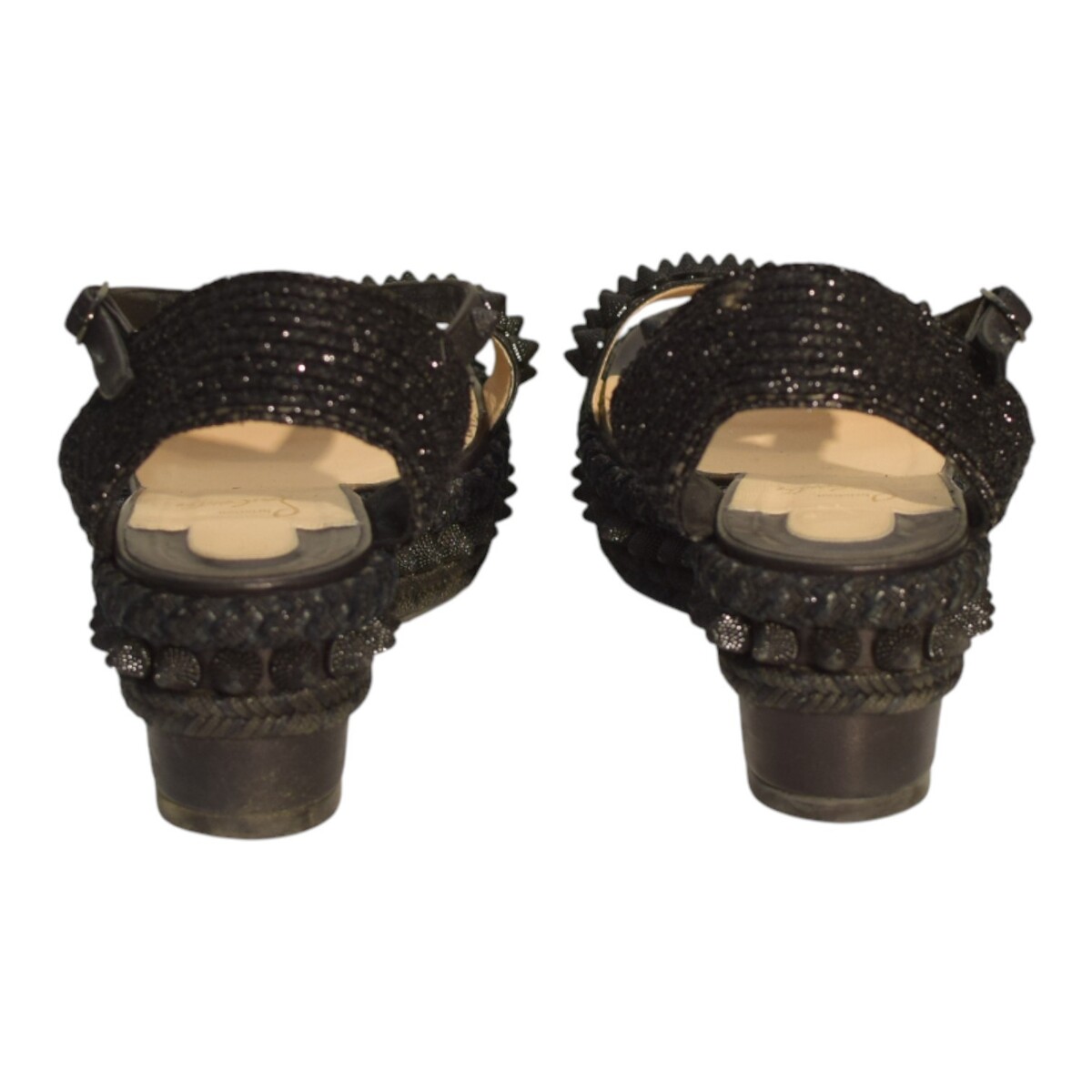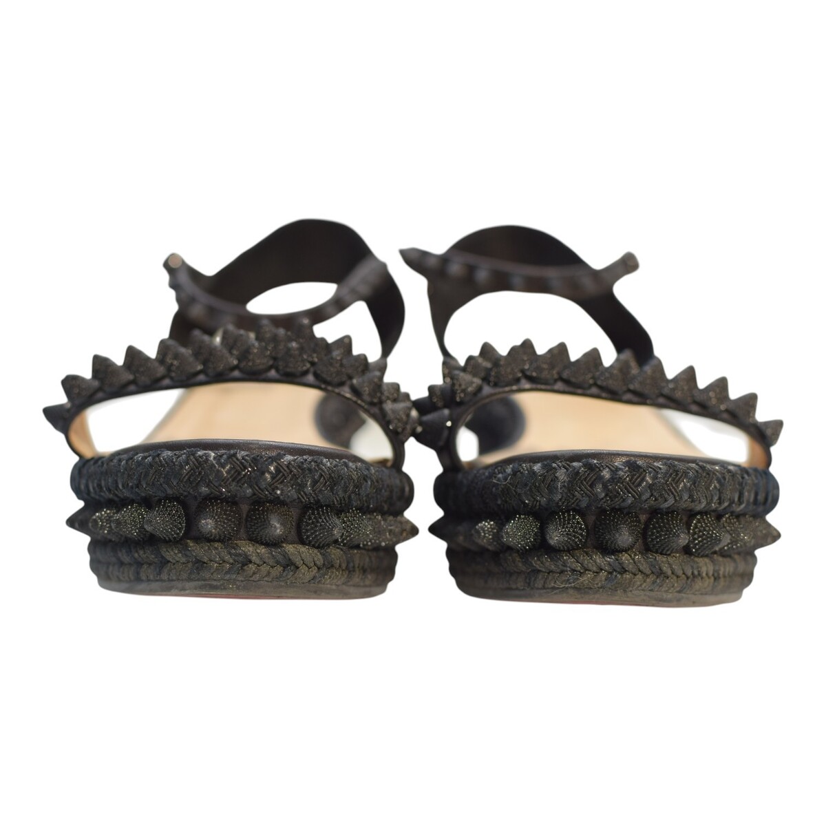 - Christian Louboutin Black Leather Madmonica 60 Spiked Espadrille Sandals Size 9