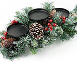 Christmas Candle Holders Set Table Centerpiece 3 Holders Pinecones Red Berries