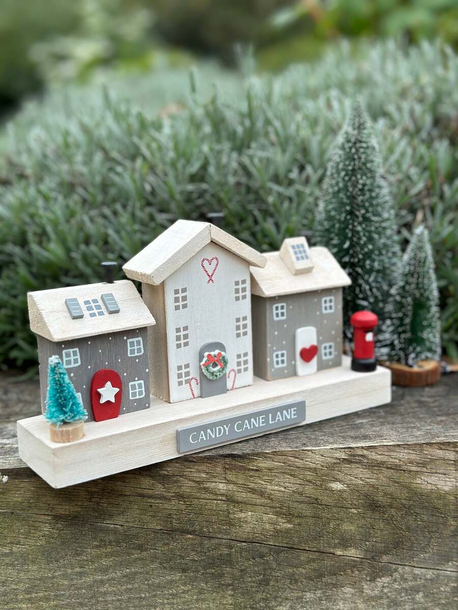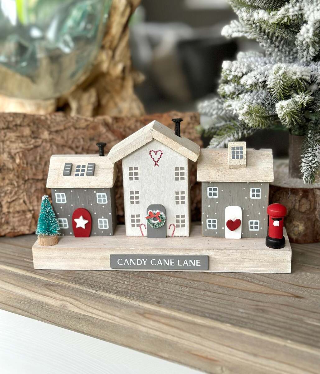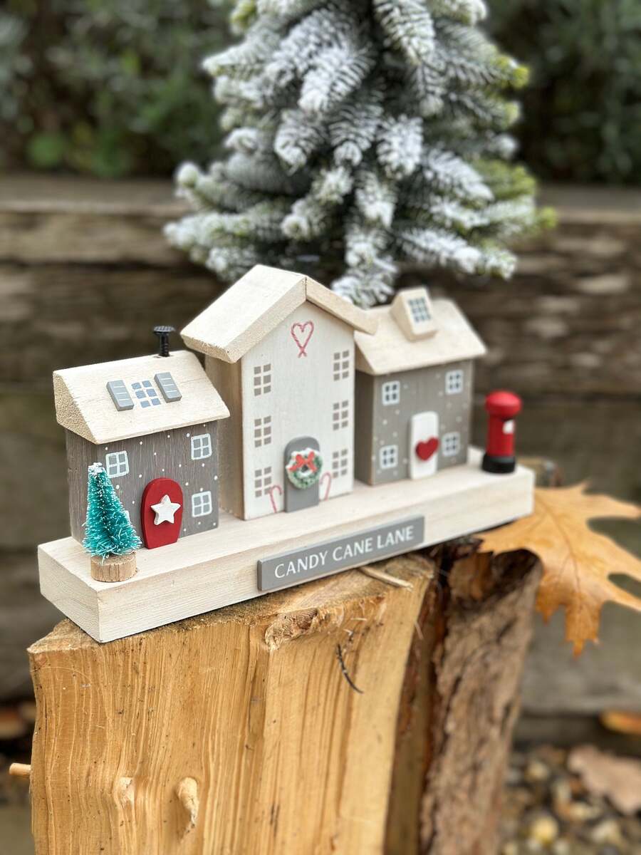 - Christmas Candy Cane Lane Festive Wooden House Scene