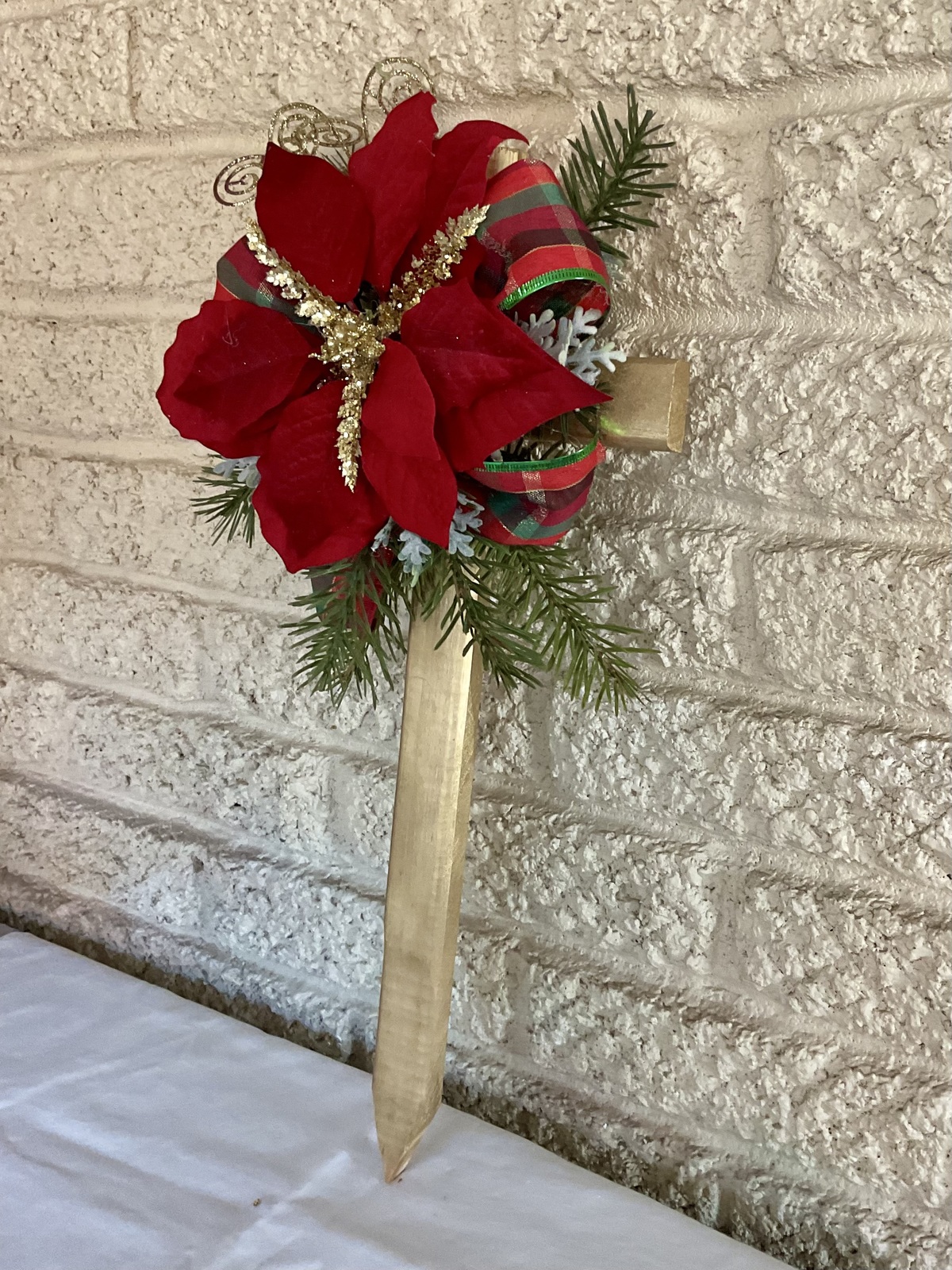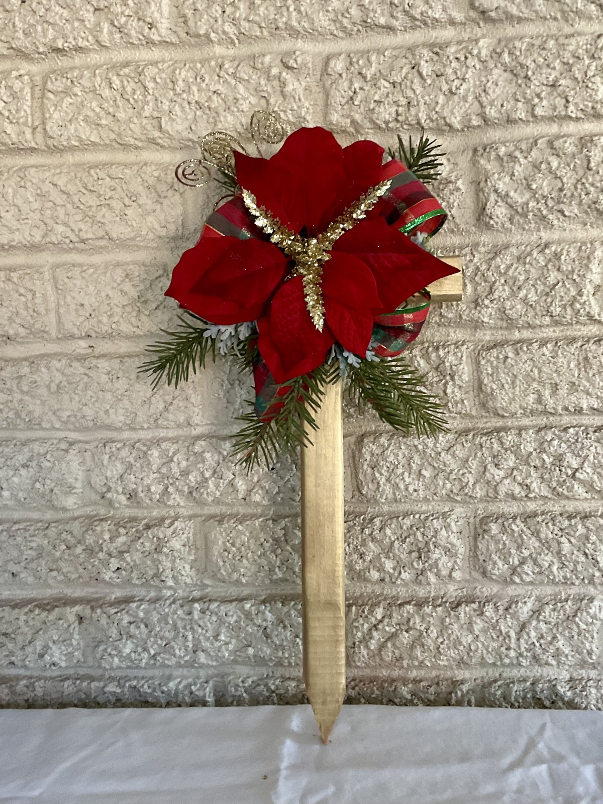 Christmas Cemetery Cross: Poinsettia grave flowers, Winter Grave Decoration