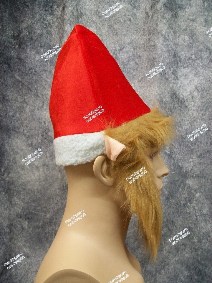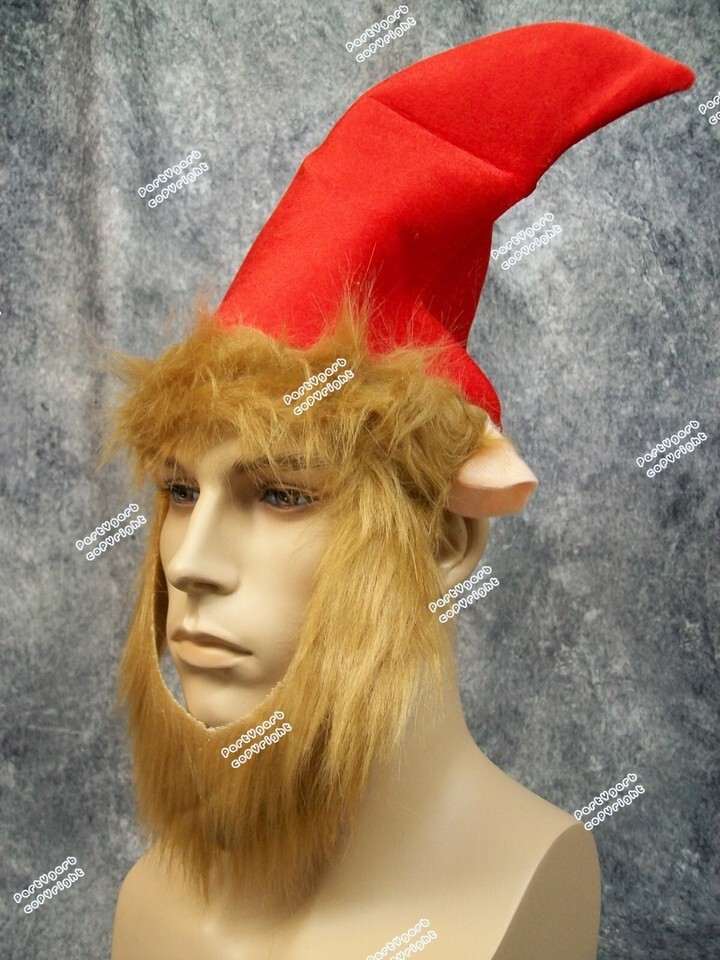 Instant Elf Costume Hat, Fabric Ears Beard. The base of hat has some furry hair attached in the front. The hat will require some stuffing to maintain shape. The beard is attached to the hat on the sides. Small fabric ears on the sides. One size fits most. For ages 14 and up. The fuzzy hair and beard sheds quite a bit. Hat picks up lint easily. Beard could be worn out in front of chin or kind of tucked under. Does have some wrinkles creases from being folded in package.