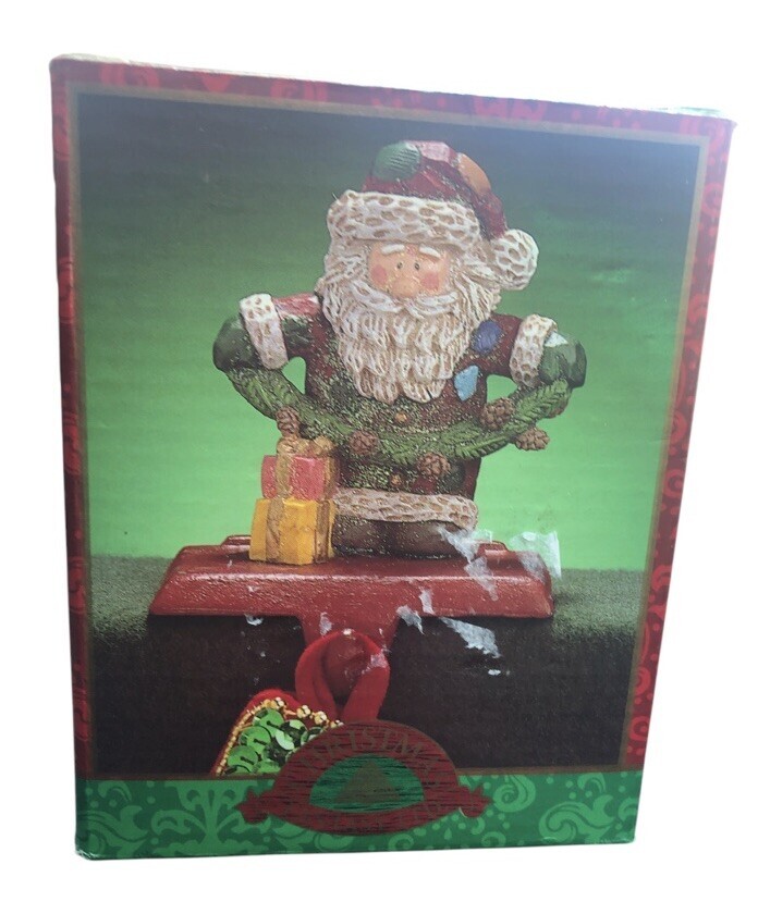 - Christmas Fantasy Stocking Hanger Santa Collection 4" Green Red Ceramic Read
