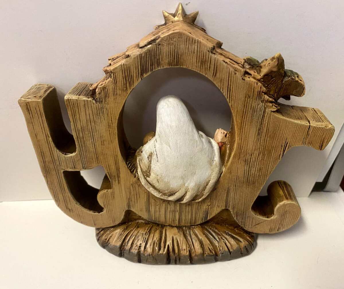 You are purchasing a very nice nativity figurine, that has Our Blessed Mother Mary Baby Jesus, sitting in the middle of the word "JOY". That is what the Christmas season brings to all of us, JOY for the birth of Our Lord Jesus.