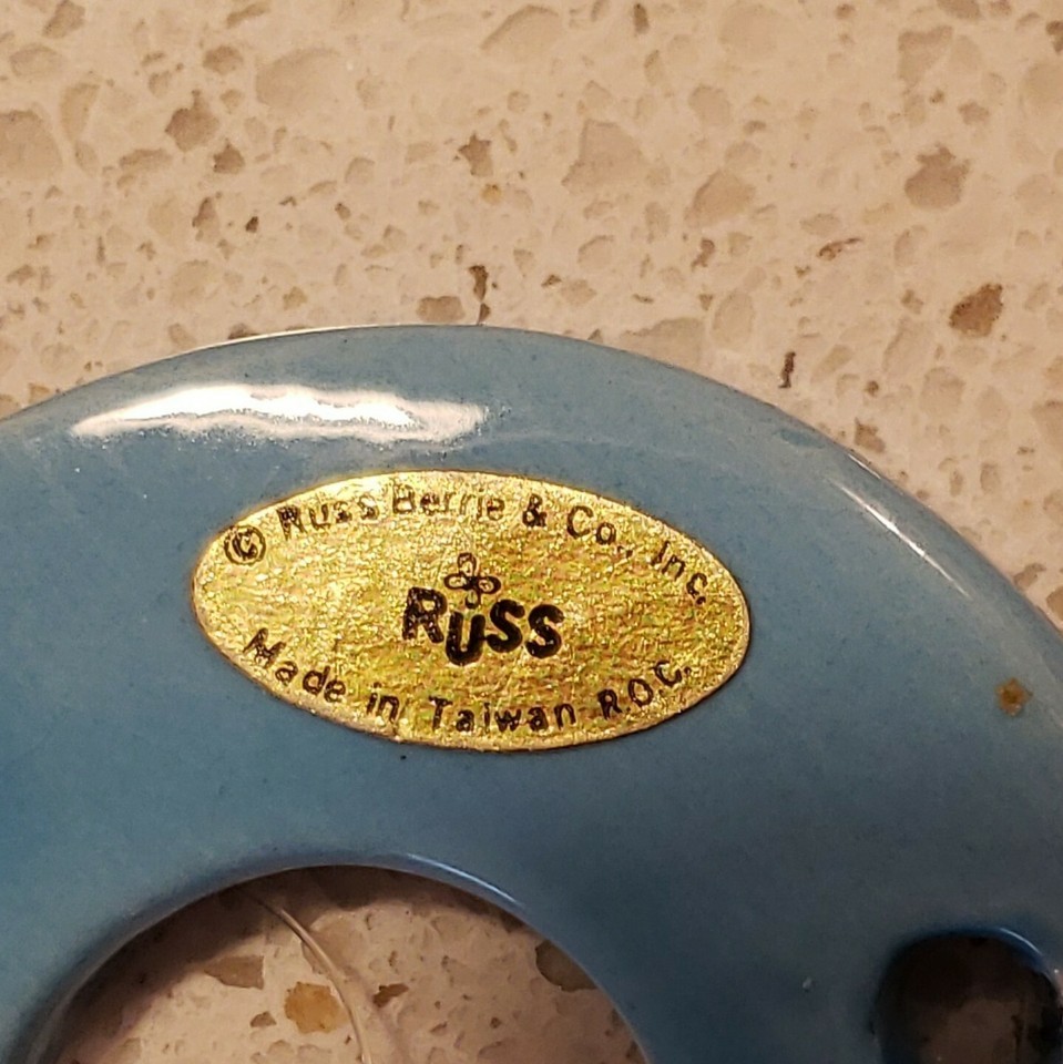 Vintage Russ Berrie Soldier Palace Guard Holiday Windchimes Christmas Ornament Three little soldiers are about 2 3/4" tall Total length of the windchime is 6" One soldier has been repaired. See last photo Ceramic, wire and nylon line Drummer Soldier is a 2-piece with feet that dangle/attached inside Approximately 3" tall Original stickers attached