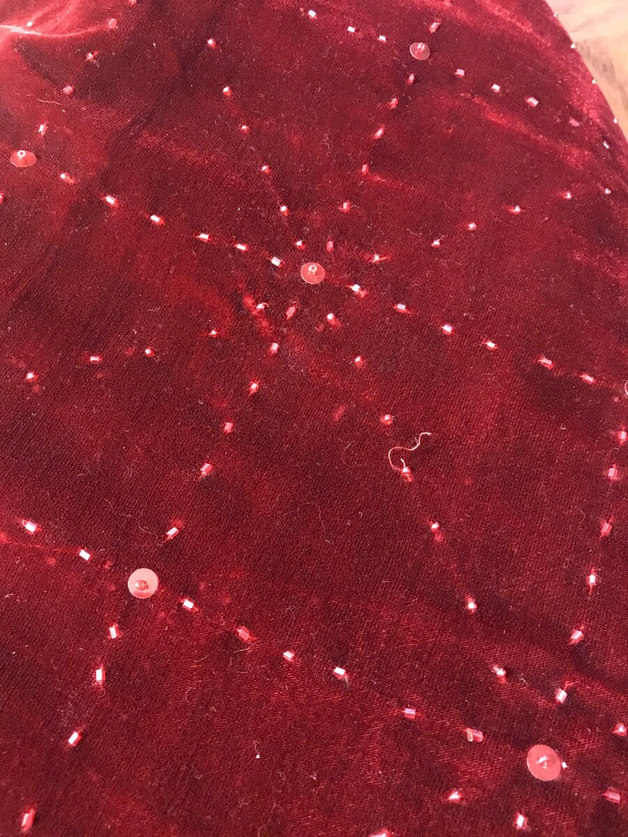 Add a touch of Christmas cheer to your home decor with this beautiful large red and green tree skirt. The vibrant colors and unique design make this piece a rare find. It is perfect for enhancing the look of your tree and creating a festive atmosphere in your living space.