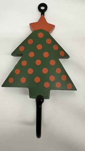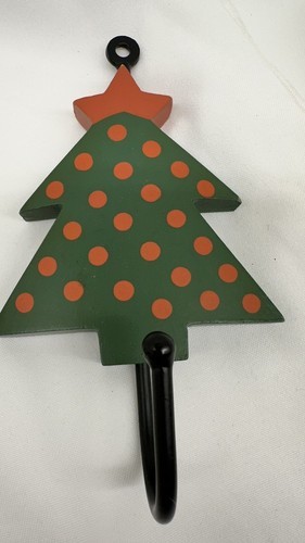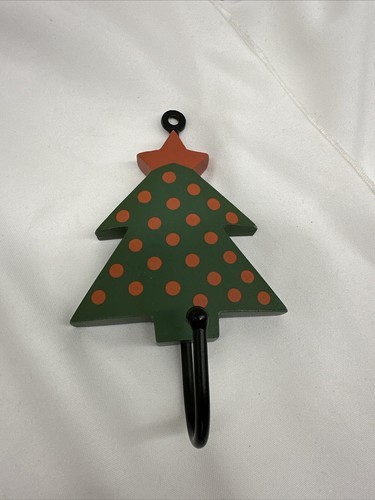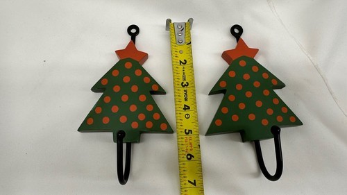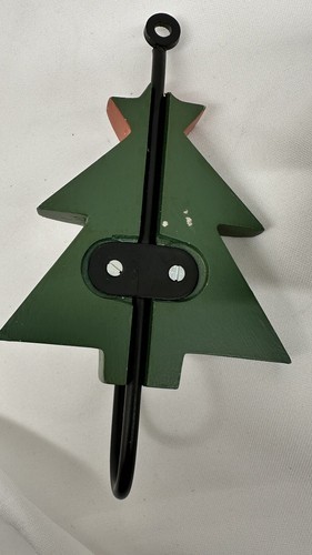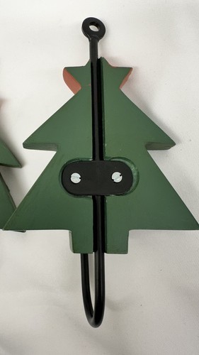 - Christmas Tree Stocking Hanger, Wooden Folk Art Design W/ Metal Hook Lot Of 2