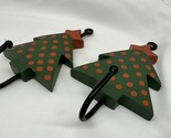 Christmas Tree Stocking Hanger, Wooden Folk Art Design W/ Metal Hook Lot Of 2