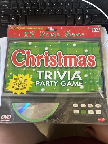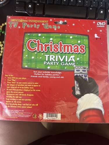 Christmas trivia party game. Use the DVD to play the game on your television. The packaging is splitting on one side due to age of plastic. Never played.