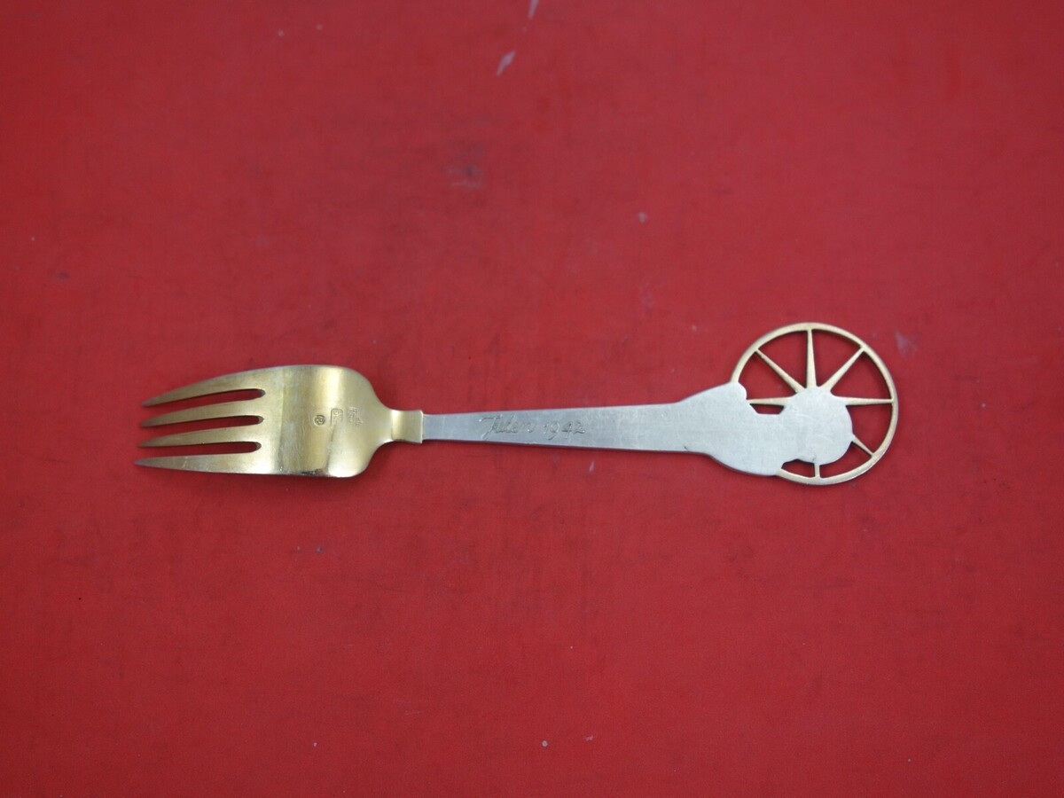 Sterling silver Regular Fork 1942 lb Lunding Madonna Childm vermeil and enameled in the pattern Christmas by A. Michelsen. It is not monogrammed and is in excellent condition.