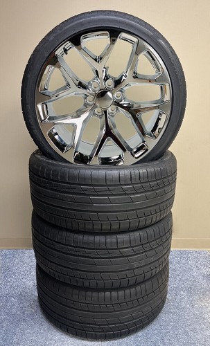 Primary image for Chrome 24" Snowflake Wheels H/T Tires Chevy Silverado Tahoe GMC Sierra Yukon
