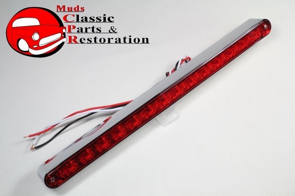 Chrome Bezel Red LED Stop Turn Tail Light Bar Custom Truck Hot Rat Rod 12"
