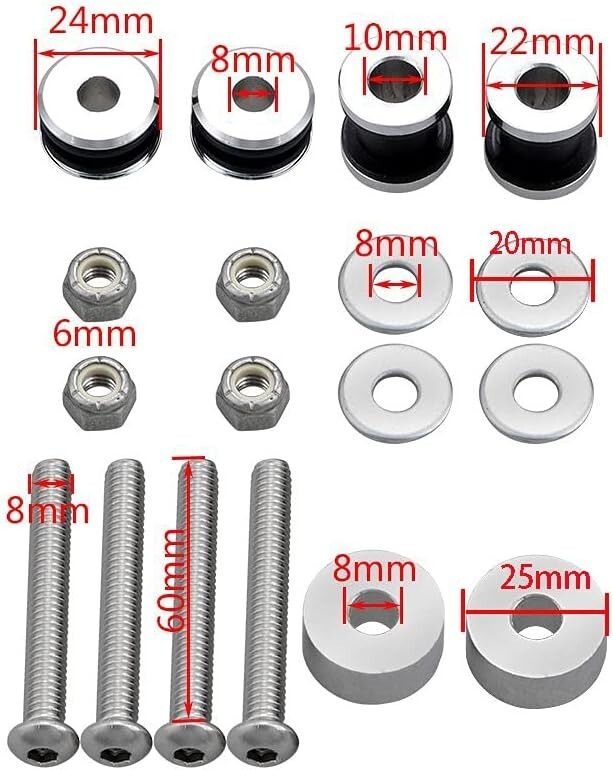 Chrome Motorcycle Sissy Bar Docking Hardware Kit