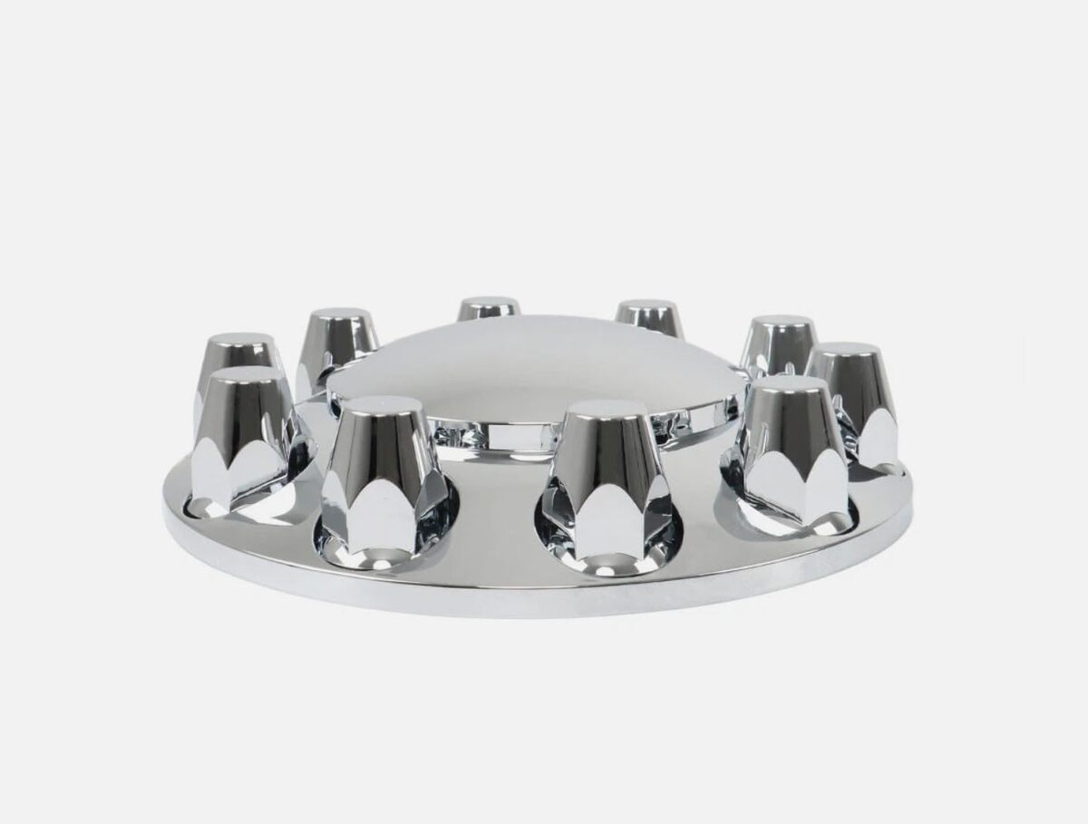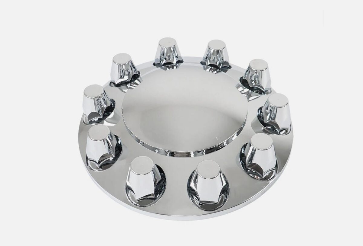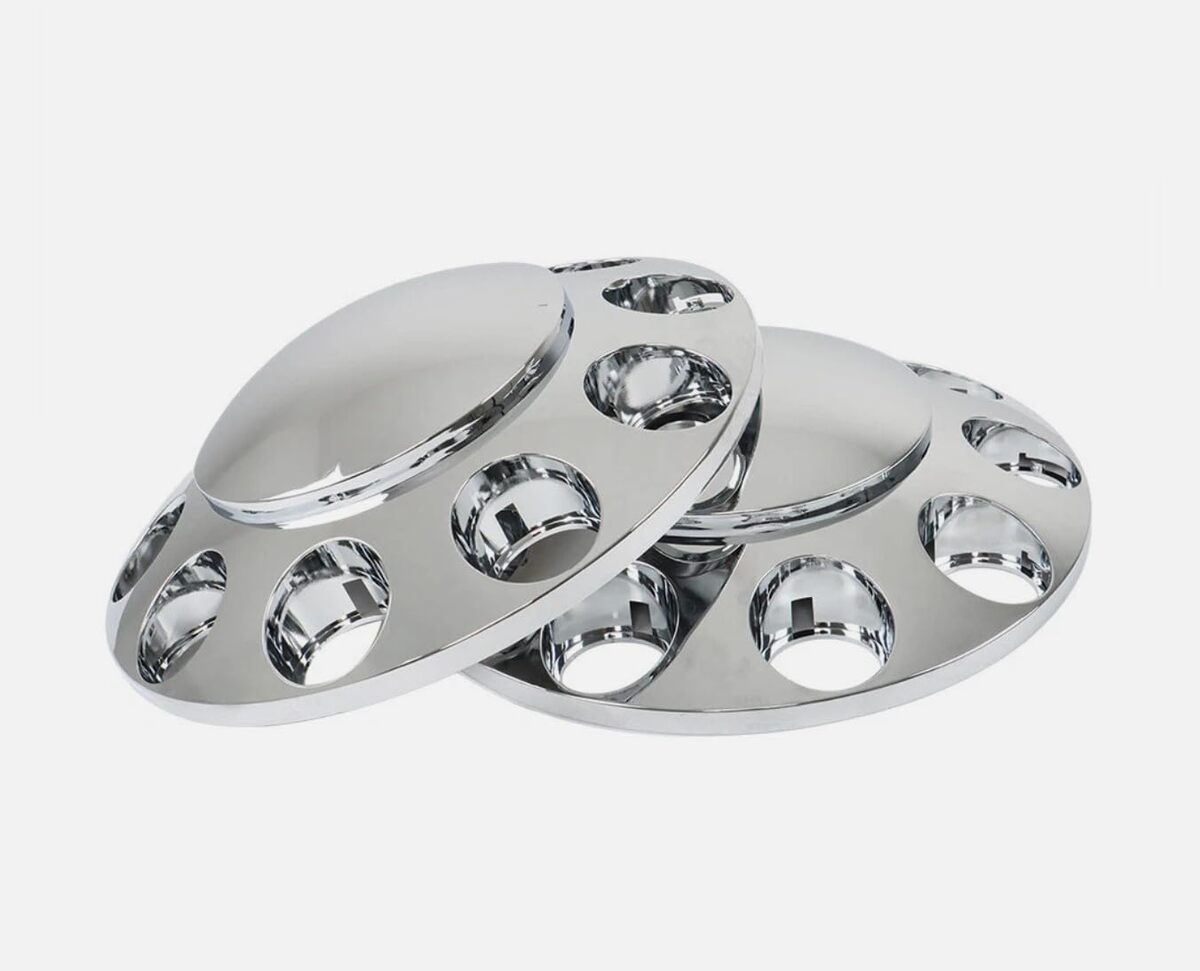 -1 pair front Semi Truck Wheel Cover made of high Quality of ABS Plastic with Chrome Plated. -Fits most of 10 holes 20 in, 22.5 in and 24.5 in wheels with 11.25 in bolt circle.