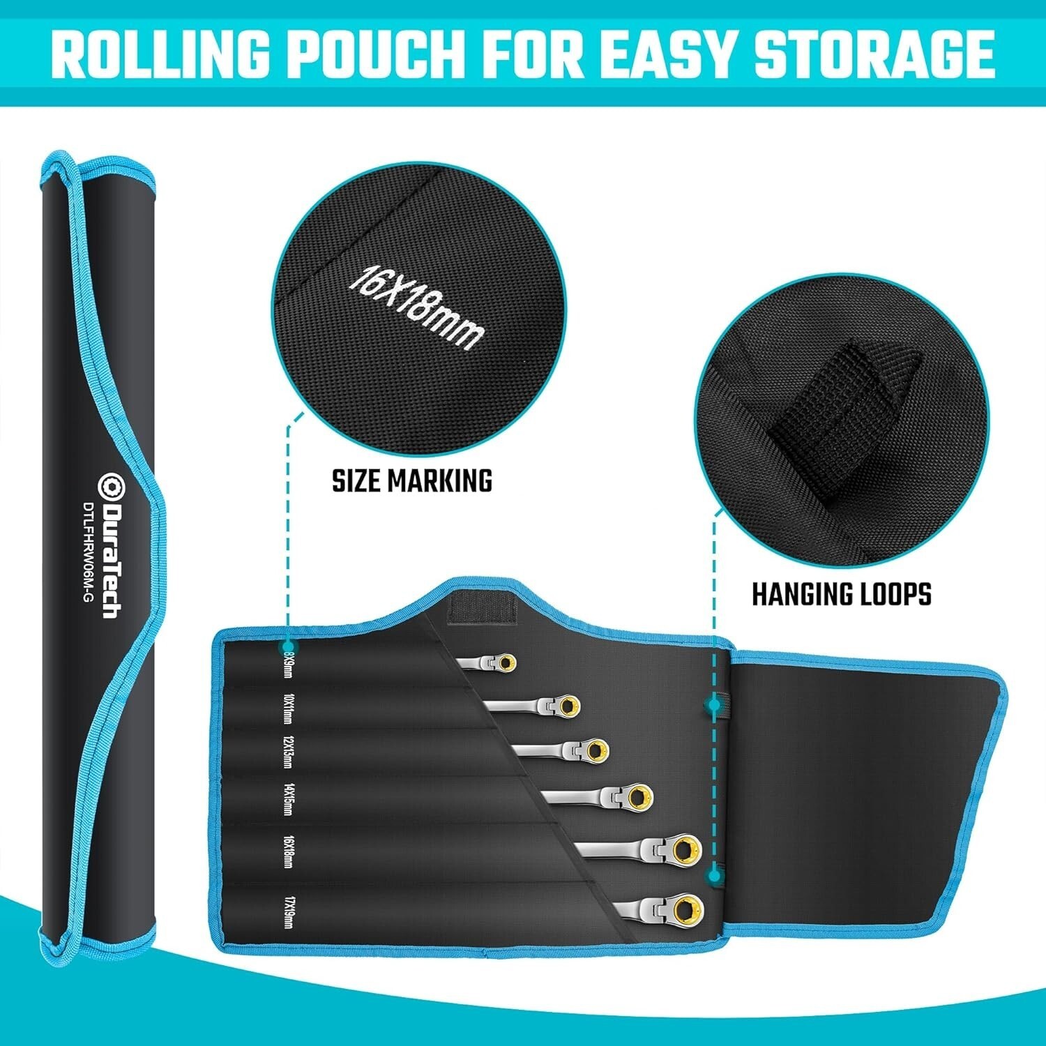Chrome Vanadium 6-Piece Metric Ratchet Wrench Set with Roll-Up Pouch