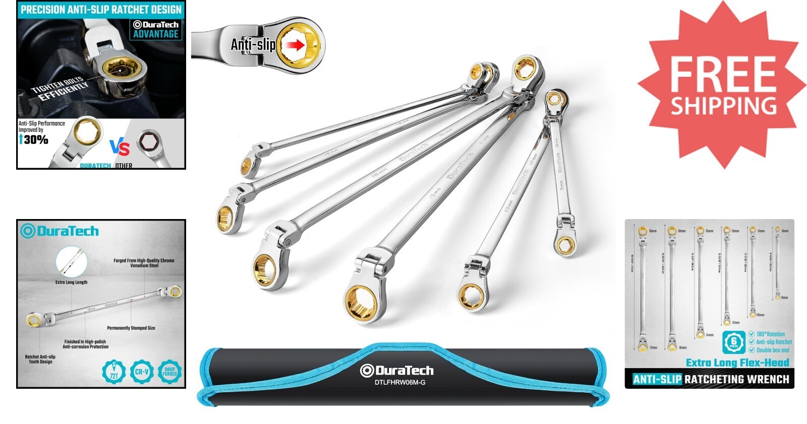 Upgrade your tool collection with our Precision Anti-Slip Ratchet Wrench Set. Designed with a 30% higher anti-slip performance, these wrenches ensure secure grip on round nuts (up to 85% of nut wear). Featuring 72-tooth gears, they require only a 5-degree swing, ideal for tight spaces. Crafted from chrome vanadium steel and heat-treated for durability, each wrench offers extra-long handles for increased torque, reducing effort and enhancing leverage. The 180-degree rotating heads allow flexible operation around obstructions, making them perfect for industrial and automotive tasks. The set includes six high-quality ratcheting wrenches (sizes: 8/9, 10/11, 12/13, 14/15, 16/18, 17/19) stored in a roll-up pouch for easy organization and transport. Please check the maximum torque specifications before use to maintain optimal performance. To ensure fast and reliable delivery, we work with multiple fulfillment partners and suppliers. Depending on availability and location, your order may ship from different warehouses or arrive in packaging that varies from item to item. Tracking details are typically provided shortly after shipment, and customer satisfaction remains our top priority.