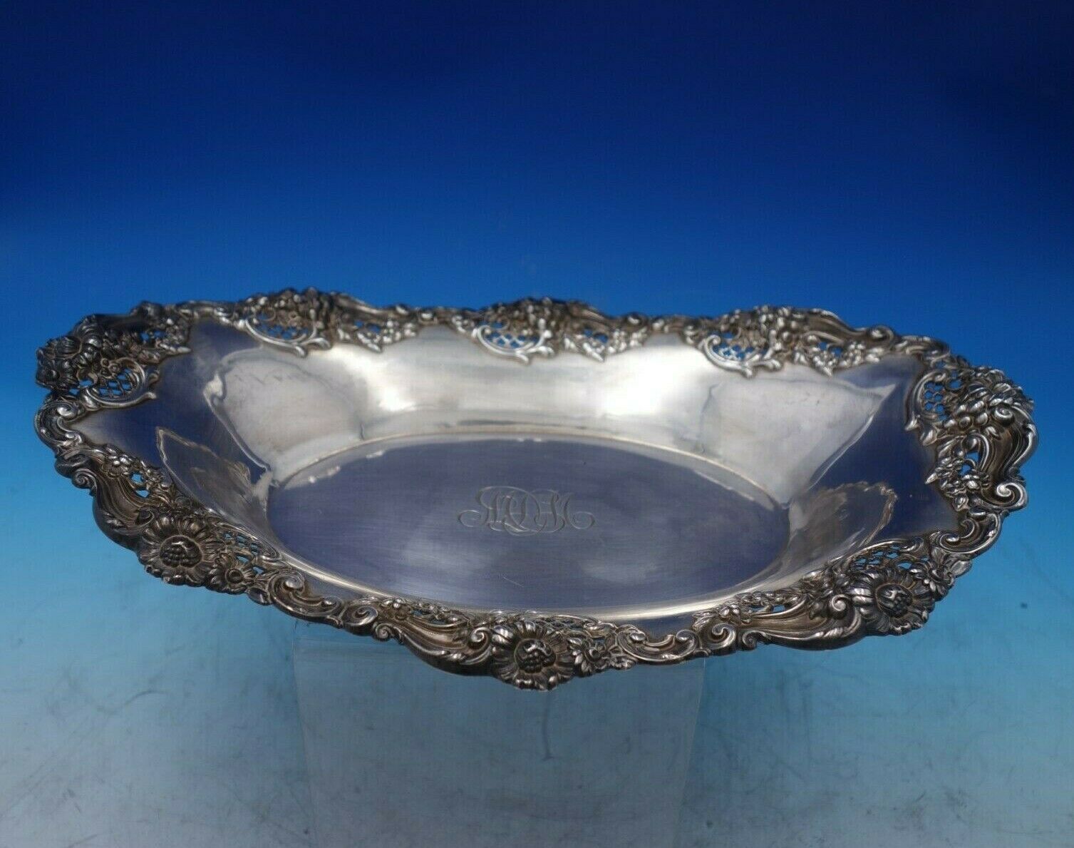 Lovely Chrysanthemum by Graff, Washburn and Dunn sterling silver bread tray. This tray was retailed by Cowell and Hubbard Co. This piece measures 12" x 8" and weighs 10.8 troy ounces. It has a scrolly monogram in the center (see photos), and is in good vintage condition. Beautiful!