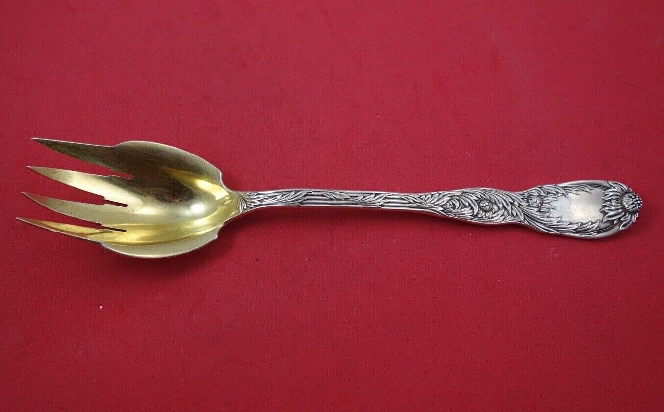 Sterling Silver Salad Serving Fork, gold washed 10 1/4" in the pattern Chrysanthemum by Tiffany. It is not monogrammed and is in excellent condition.