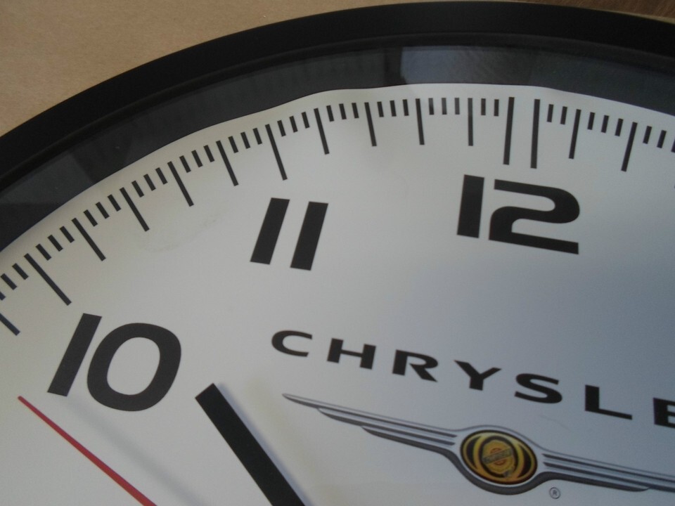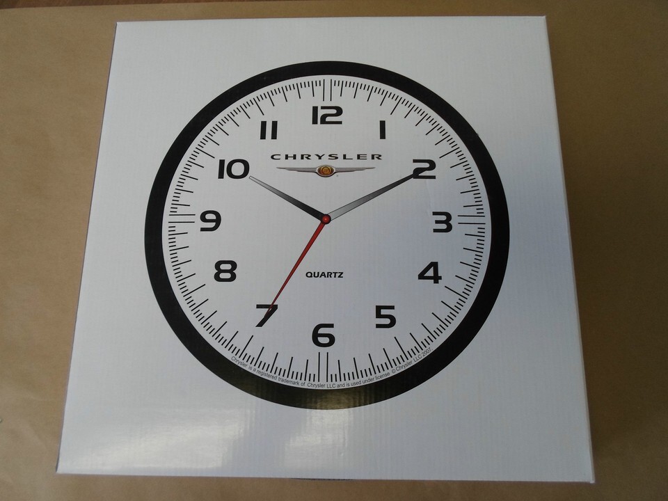Chrysler Logo Wall Clock Official Licensed Chrysler Quartz Black Frame White Background WARPED