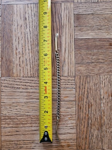Chain is about 5'' long. Including tag, item is about 7'' long total.