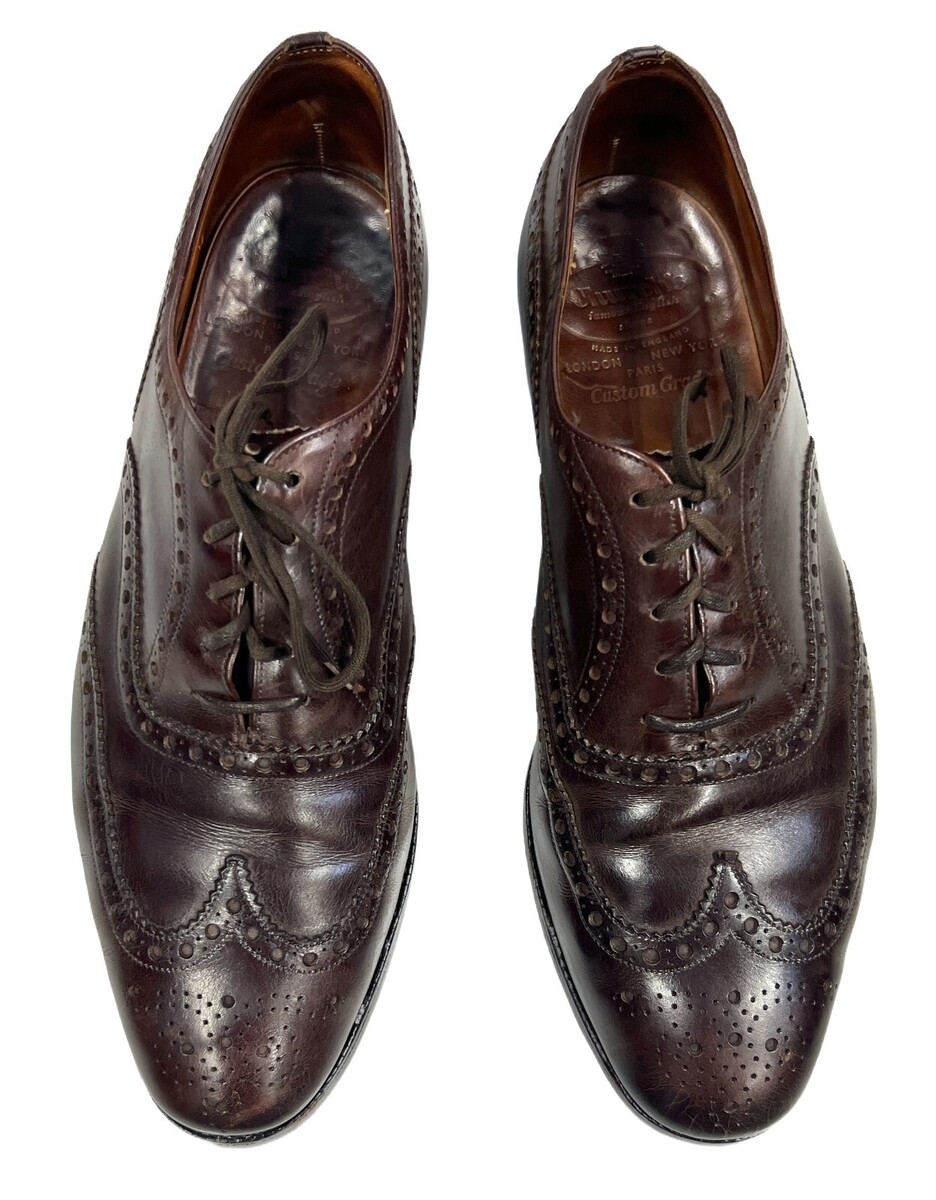 Beautiful Mens "Church's" custom made Brogue shoes appear to be newly soled,since the leather sole is stamped made in italy-and the tops are in great new-ish condition- Im not sure if they were restored or what but they look like new.The only way to tell they have been worn is the insole is worn enough to make it hard to read.