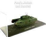 1:72 Scale Diecast Model ? Churchill British Infantry Tank - Length: 4", Width: 2? This tank model is made of a combination of metal and plastic parts. The turret can rotate all 360 degrees. The tracks are fitted, however they do not move. The coloring and markings are accurate and realistic. The maker of the model really did a good job with the model, the panel lines and details are very clear and crisp. These models have different details engraved such as doors, hatches, panels, lights, ports, antennas, machine guns, ropes, shovels, etc; all of these done with high accuracy and proportion. When they are painted in different color, say for example, shovels and ropes, they are indeed painted accurately. The weathering effect that these tanks have, such as smoke and oil staining makes them look very realistic. Depending on the particular type of tank, some will have machine guns and antennas that look very accurate These models come attached to a base by two screws, an acrylic plastic cover that serves as a display case is included. The base of the display case measures 7 inches by 3 inches. The acrylic cover measures 7 inches by 3 inches by 2.75 inches high. These models are not toys, they will not last long if played with. The tracks don't move and the turrets and their main guns and machine guns can be quite fragile because of their size. Some of the tanks will have a turret that does not rotate at all. (so if you try to rotate the turret or change the elevation of the gun and feel some resistant, better leave it alone and don't risk breaking something). The Tank, Infantry, Mk IV (A22) Churchill was a British infantry tank used in the Second World War, best known for its heavy armour, large longitudinal chassis with all-around tracks with multiple bogies, its ability to climb steep slopes, and its use as the basis of many specialist vehicles. It was one of the heaviest Allied tanks of the war.