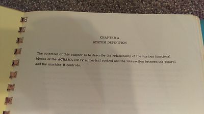 Cincinnati Milacron Machine Acramatic IV Contouring Control Manual pn#- 611181-MA This is awesome. This is not to be found anywhere except right here. This is complete book. I took picture of the table of Contents. You can see the machines it covers. Fix your junk and buy your manual here. Will ship international. please ask questions. Please look at pictures.
