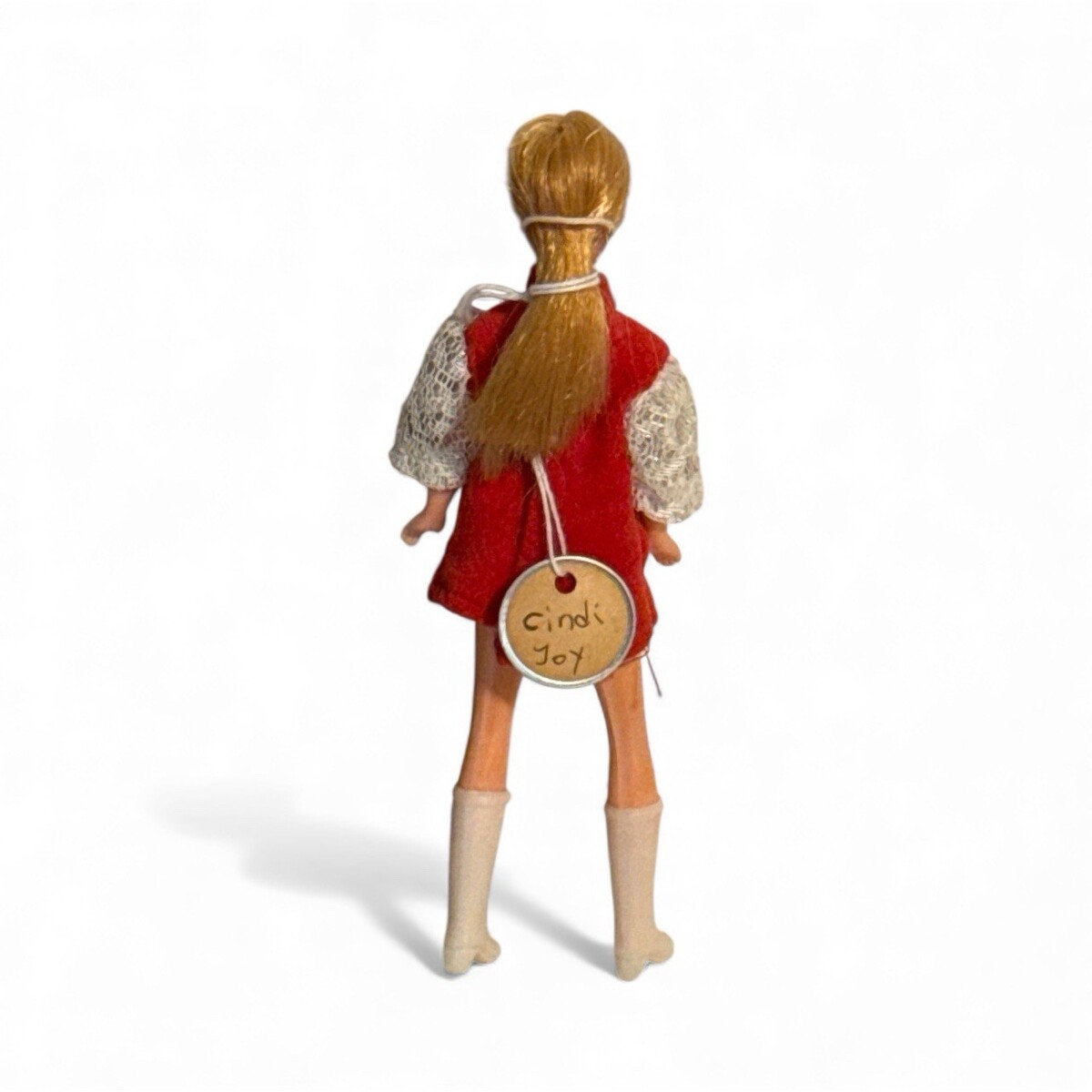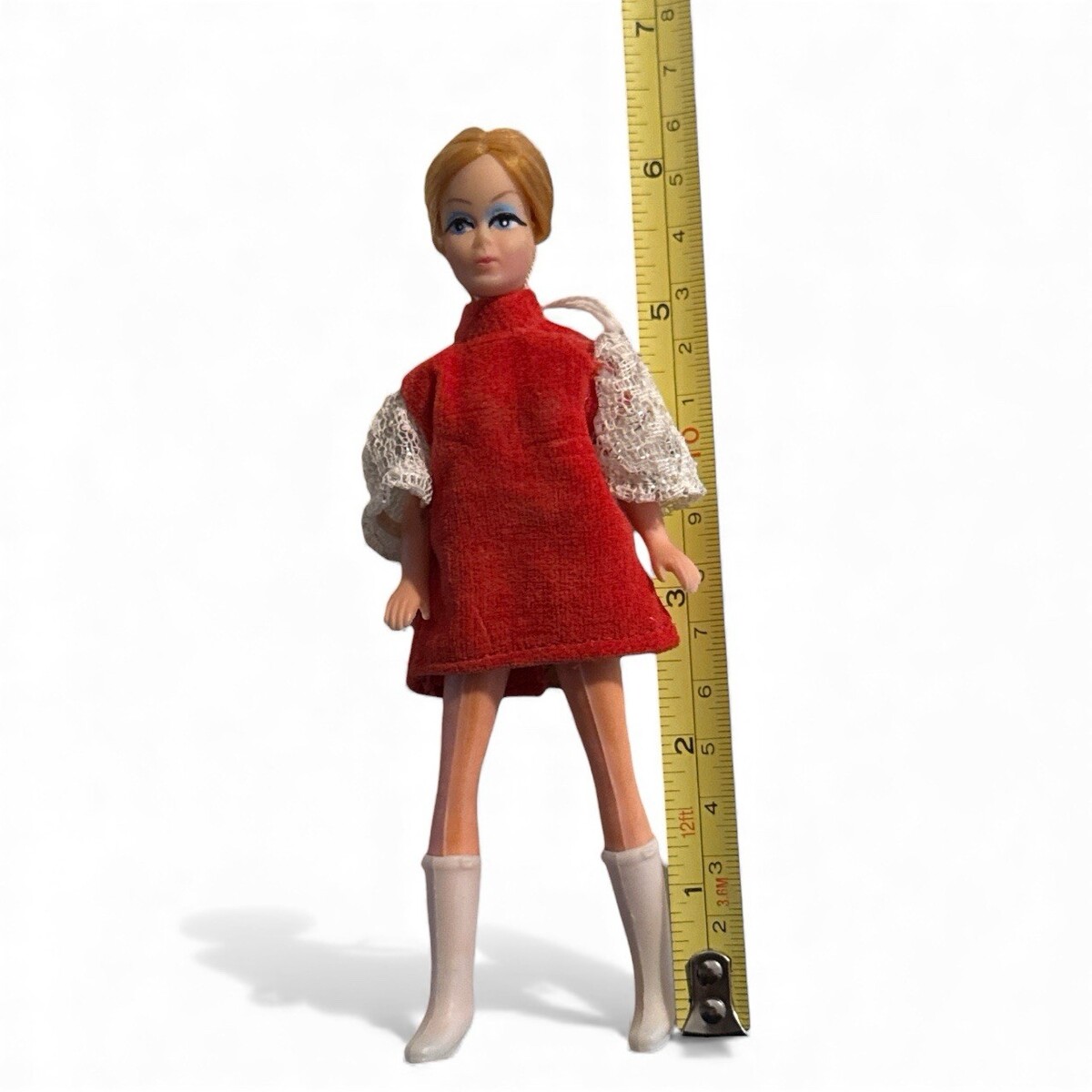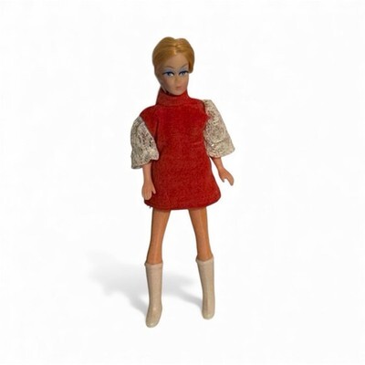 Cindi Joy Clone Topper Dawn 6" Doll Red Hair Dress White Boots Mort Alexander Looks great. Manufactures defect spots of blue paint on the side of her face. This listing includes a 6" Mort Alexander Cindi Joy doll. The doll is in very good condition. Her back is stamped with "Hong Kong" and "Mort Alexander"; there is no photo of this because I didn't want to disturb her hair. The snap is still on the back of the dress. The waist will twist and the legs bend. The doll is not flawless. Approximately ~.25" of the white lace sleeve is detached from the red shoulder of the dress; I've tried to photograph this, but it does not photograph well. The doll is otherwise clean and without unusual odor. Please see photos. Please see our other items listed. We have other collectors dolls, dollhouse and vintage Christmas/Holiday. In A