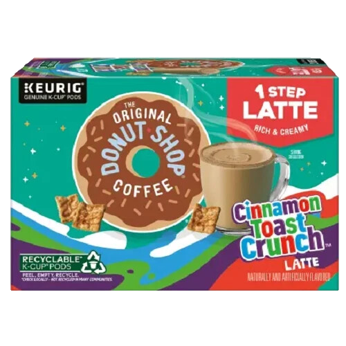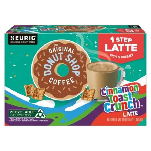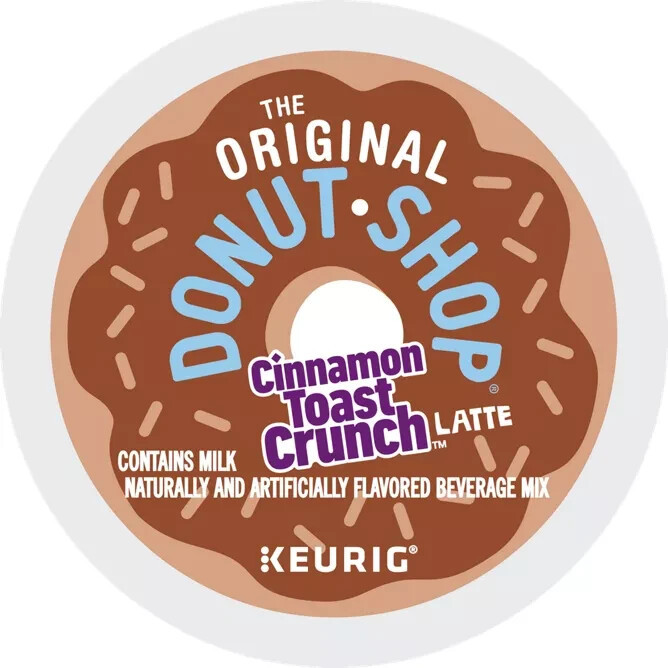 Your inner child called. They?re SUPER on board. Because it?s the taste you grew up loving, in a latte that you could only dream about ? until now, that is. An irresistibly delicious way to pour even more Cinnamon Toast Crunch? awesomeness into your everyday and turn your coffee break into an epic cinnamon-blasted fantasy come to life. Nothing beats a perfectly made latte. So rich. So creamy. And now ? so easy! The Original Donut Shop Coffee Cinnamon Toast Crunch? One Step Latte K-Cup pods are filled with coffee, flavoring, and sweetener ? all in one! It?s so easy to make, you?ll be swimming in phenomenal flavor in a cinnamon minute.