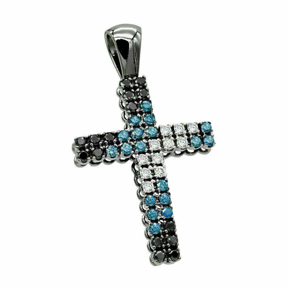 Ciondolo a croce con diamante VVS1/D taglio rotondo da 1 ct in oro nero 14...