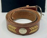 Primary image for Circle Y Of Yoakum Belt Brown Braided Leather Silver Concho Western Mens 42