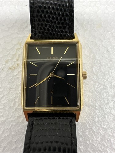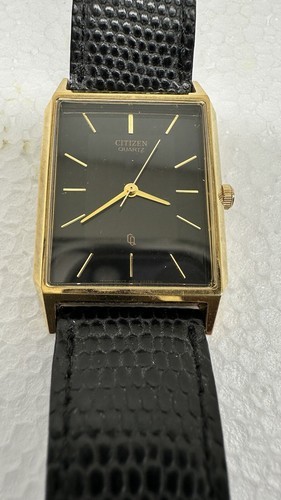 Watch needs a battery. Enhance your style with this timeless Citizen Vintage wristwatch. The watch features a brown bezel, gold tone case, and a black leather two-piece strap. The analog display of this quartz (battery) watch is a perfect complement to its gold dial color.