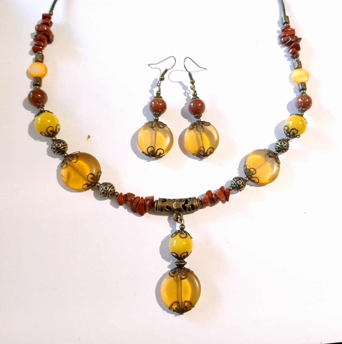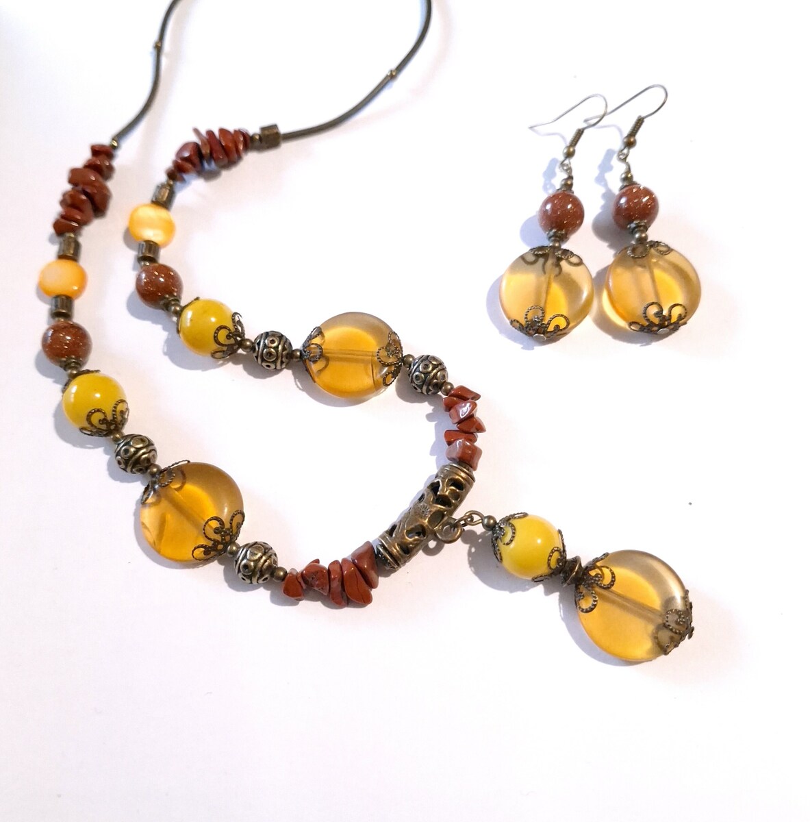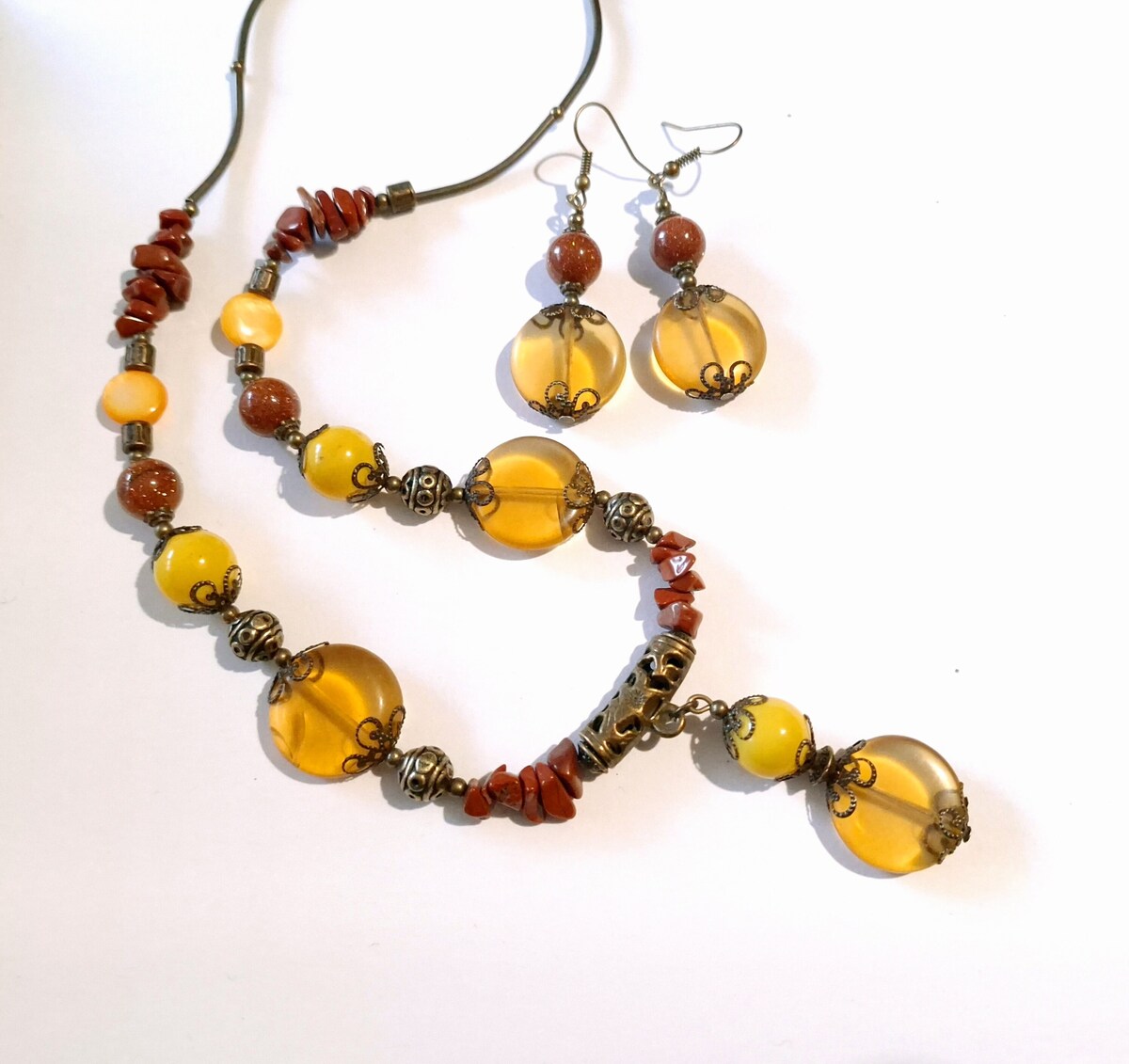 - Citrine Jasper Sunstone bronze jewelry set Mother of pearl Tribal Boho jewelry s