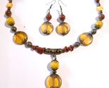 Bohemian necklace pendant necklace and earrings Vintage style necklace and earrings Citrine Jasper Sunstone bronze jewelry set Mother of pearl and yellow fine porcelain beads Tribal Boho jewelry set necklace and earrings Bronze necklace bronze earrings boho necklace and boho earrings Edwardian necklace