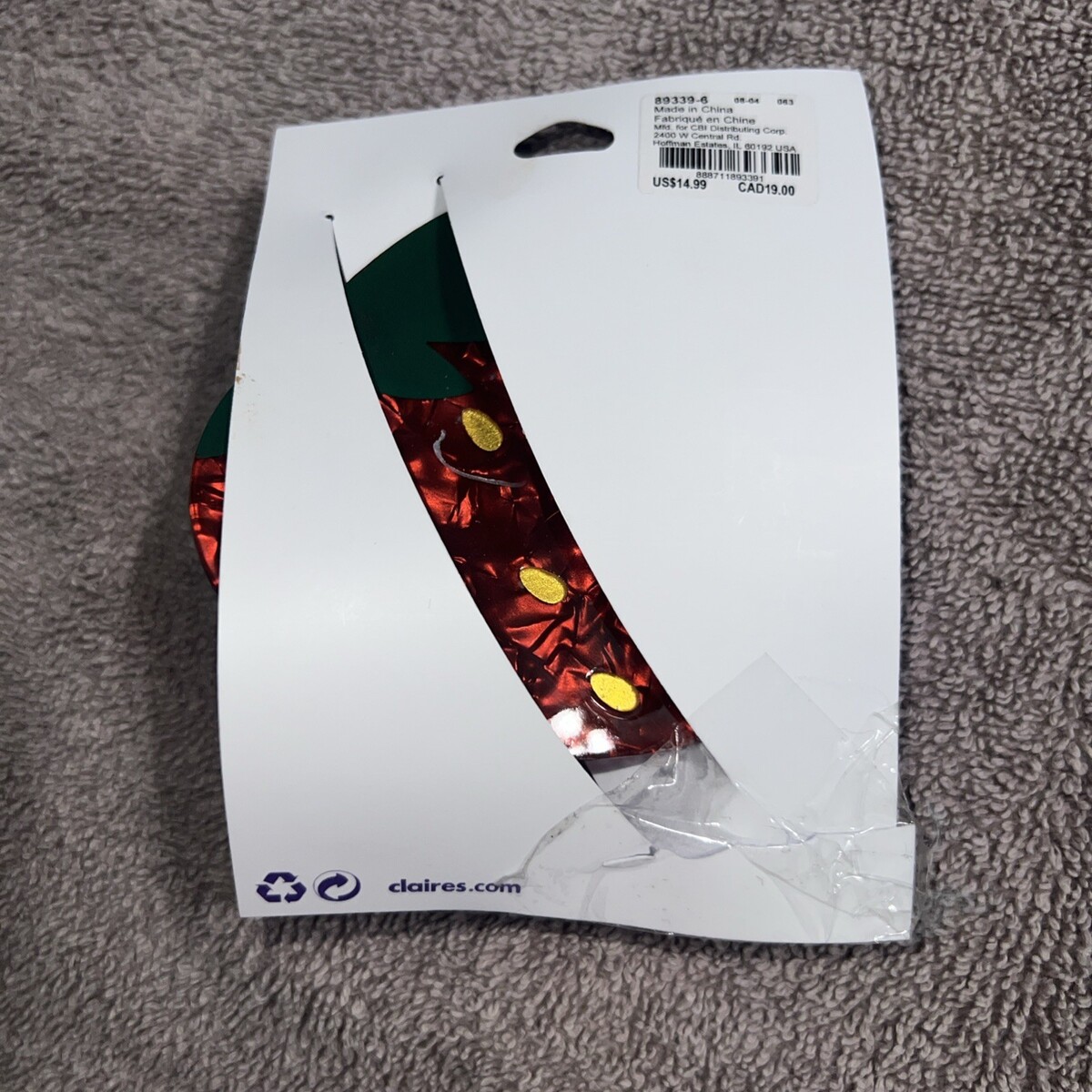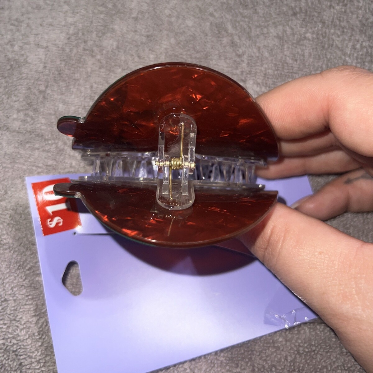 Fun and eye-catching strawberry hair claw clip from Claire?s featuring a glossy red acrylic finish with gold seed accents and a green leafy top. This whimsical fruit-shaped accessory adds a playful pop to any hairstyle and holds securely in place. Perfect for summer outfits, themed looks, or anyone who loves cute statement pieces. Brand new and still attached to the original Claire?s display card with $10 price tag. Approximate size: 2.5 inches wide Material: Acrylic plastic Color: Red, green, and gold Condition: New and unused. Attached to original Claire?s card packaging. Shipping: Ships securely within three business days. Combined shipping available for multiple purchases.