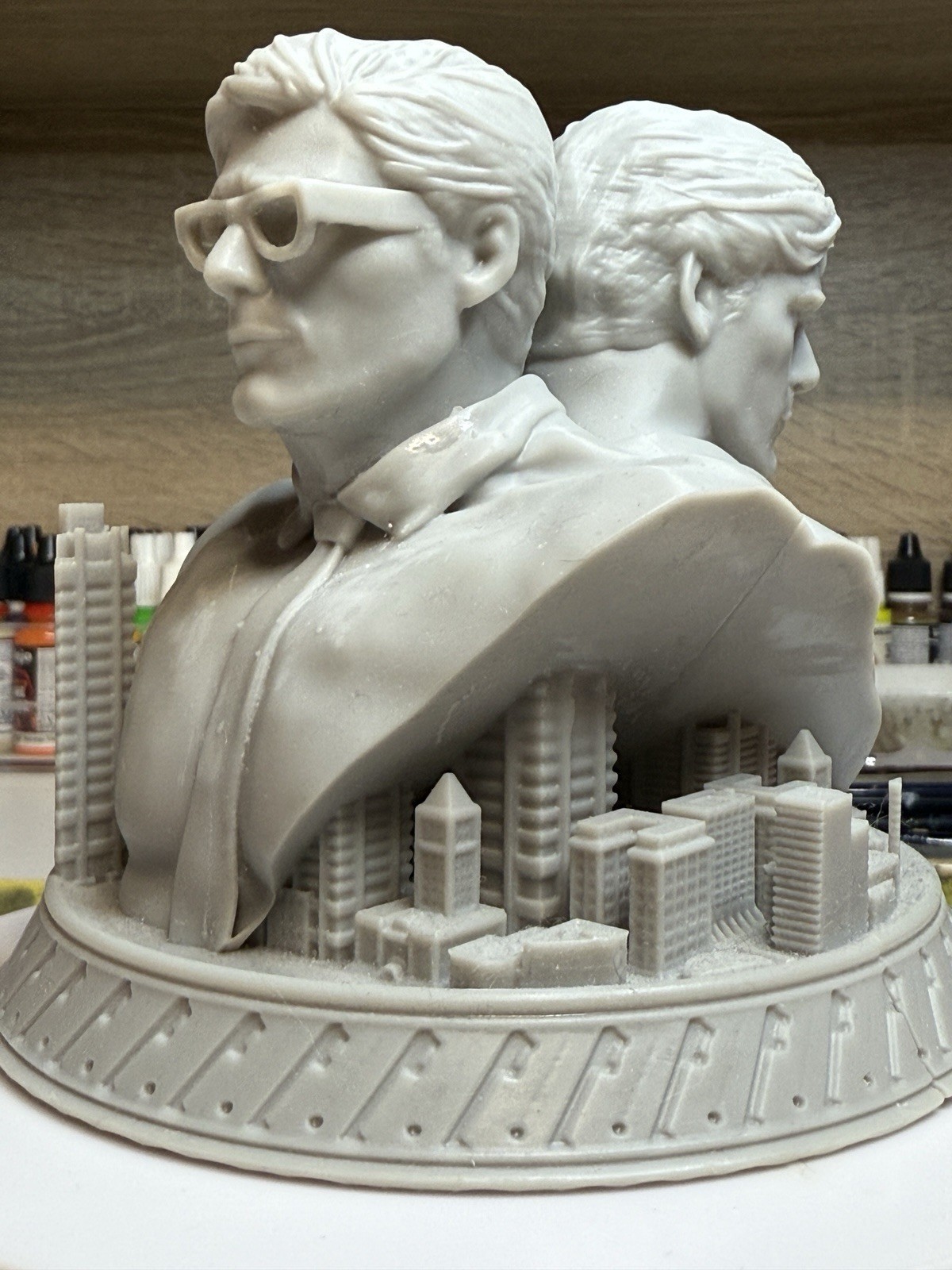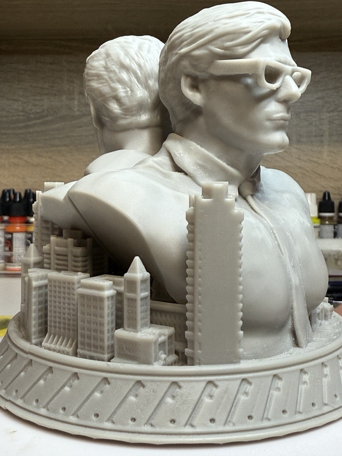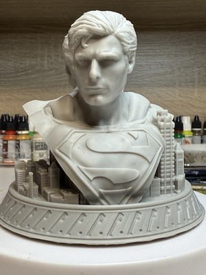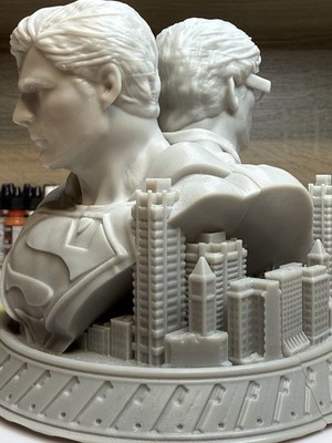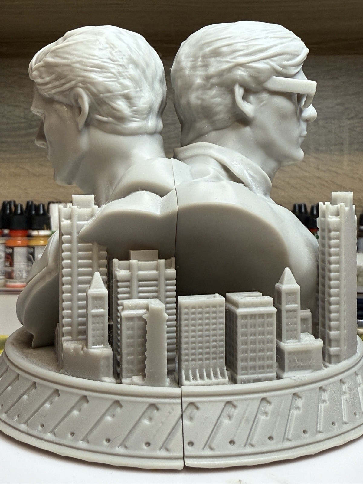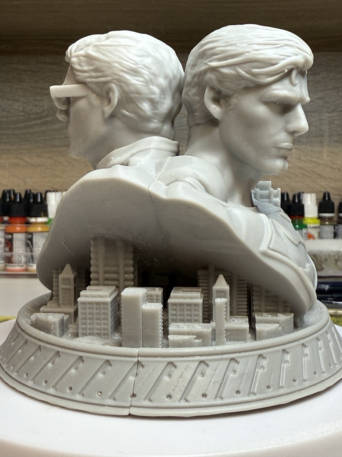 This is an unpainted tribute bust featuring both Clark Kent and Superman, capturing the iconic dual identity of the Man of Steel. This is not an official DC product. We have no affiliation with the original creators. A collectible homage for fans who want to paint their own version.