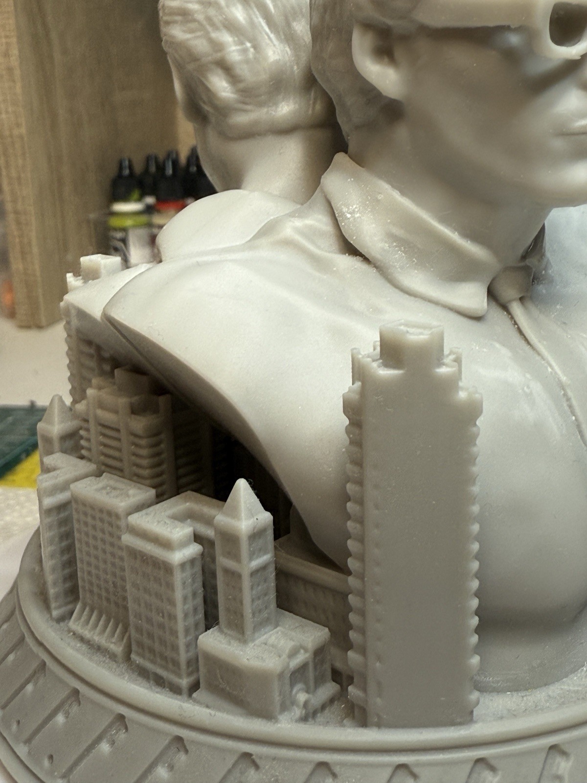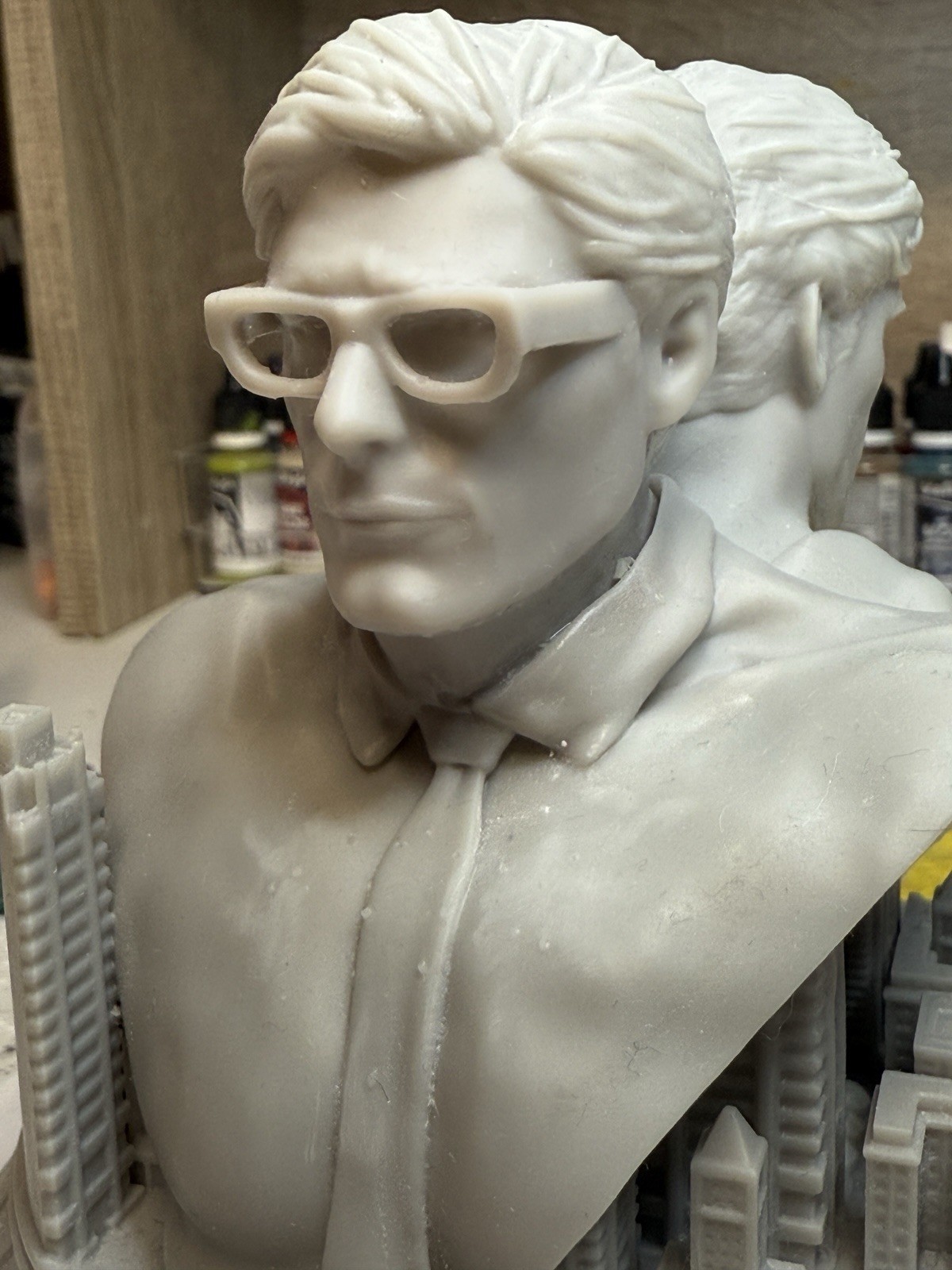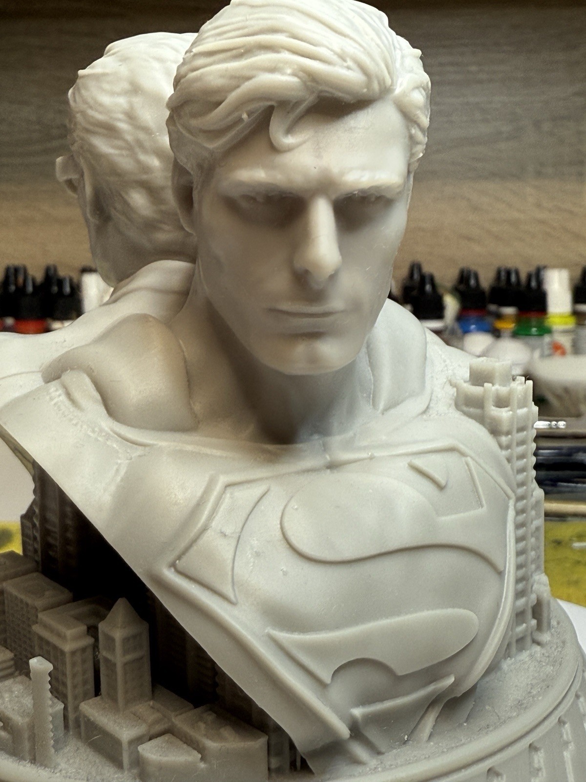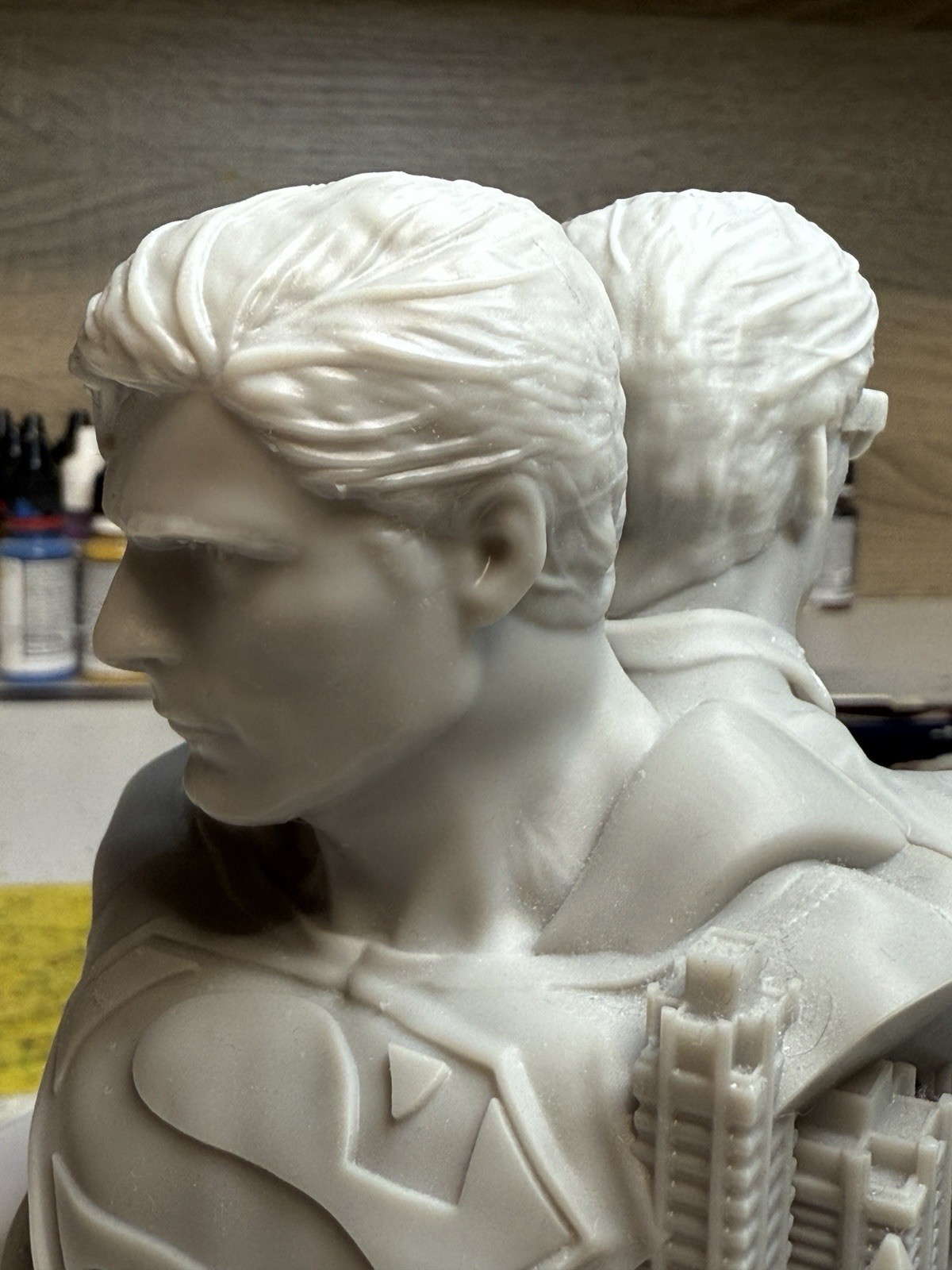 This is an unpainted tribute bust featuring both Clark Kent and Superman, capturing the iconic dual identity of the Man of Steel. This is not an official DC product. We have no affiliation with the original creators. A collectible homage for fans who want to paint their own version.