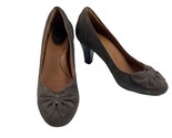 Clarks Artisan Heels Women 7N Society Ball Shoes Brown Suede Bow Pleated Pumps