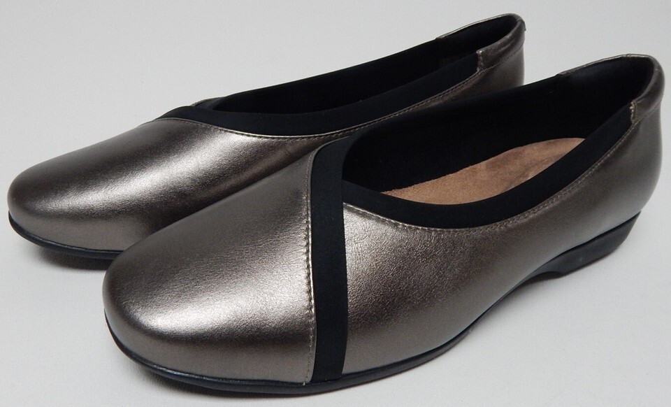 Clarks Unstructured Darcey Ease Sz 8.5 W WIDE EU 39.5 Women's Leather Flat Shoes THIS SHOE'S CONDITION: NEW WITH BOX. -Notes: IF THE ITEM IS NOT TO YOUR EXPECTATION WE OFFER A 30 DAY RETURN POLICY. ABOUT US: We specialize in footwear shoe accessories at a highly discounted price. We have a selection of new shoes, and also some displays, demos, pre-owned as well. PHOTOS: New Shoes: We usually send the the exact shoes pictured but may occasionally use our own stock images to represent several shoes. Store Displays, Demos, Pre-owned Shoes: We will send the EXACT shoes pictured here. A NOTE ABOUT OUR PRE-OWNED SHOES: We try to catch everything and describe it in the listing, but there are some things we may miss on occasion. This is why we take several pics of all pre-owned shoes from every angle possible so you as the buyer see what you will be getting. Also, because we are re-sellers we do not know the exact mileage of the shoes. SHIPPING: Shoes are in stock and ready to ship. We have a 1 day handling time but will usually ship same day if you purchase before 3PM Central Standard Time Need the item faster? We offer priority, expedited, and express one- day shipping on nearly all of our items We will combine shipping for expedited and one day deliveries. International Buyers Please Note: Import duties, taxes, and charges are not included in the item price or shipping cost. These charges are the buyer's responsibility. Please check with your country's customs office to determine what these additional costs will be prior to bidding or buying. QUESTIONS? Message us- we are usually very fast at responding! Listing and template services provided by inkFrog