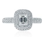 - Classic 1.09 CT Emerald Cut Diamond Engagement Ring 18k White Gold Double Halo