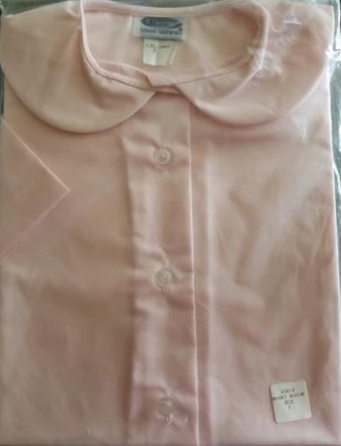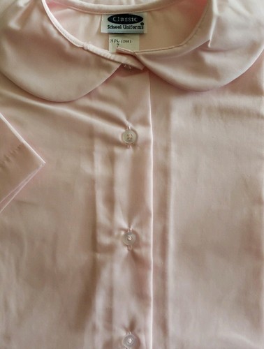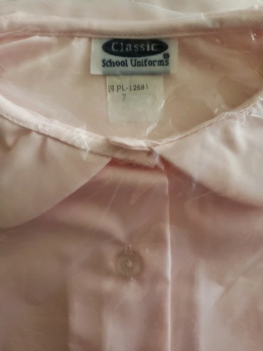 This sale is for one (1) Classic School Uniform brand shirt Button up blouse style shirt Uniform/school shirt Girl's size 7 Pink in color Rounded collar Button up, front, closure Short sleeve 65% Polyester 35% Cotton Machine wash ~ Tumble dry This shirt is brand new in original packaging Please view photos for a good description of this shirt Thank you!