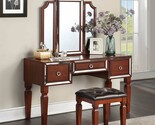 - Classic Cherry Vanity Set with Stool & Tri-Fold Mirror | 3 Drawers