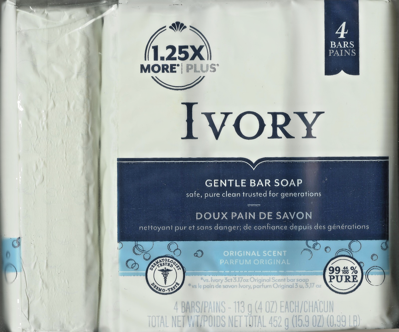 ?IVORY PURE SOAP INDIVIDUALLY WRAPPED 4 ounce BARS 4 count