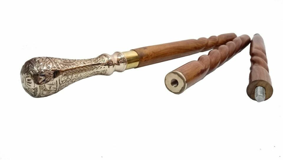 - Classic Style Wooden Walking Stick Cane Silver Brass Long Head Handle Gift