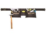 This contractor-grade work apron has a 2 In. inches wide web belt with an interlocking buckle, and 5 main pockets with 3 smaller pockets and sleeves, includes a hammer loop.