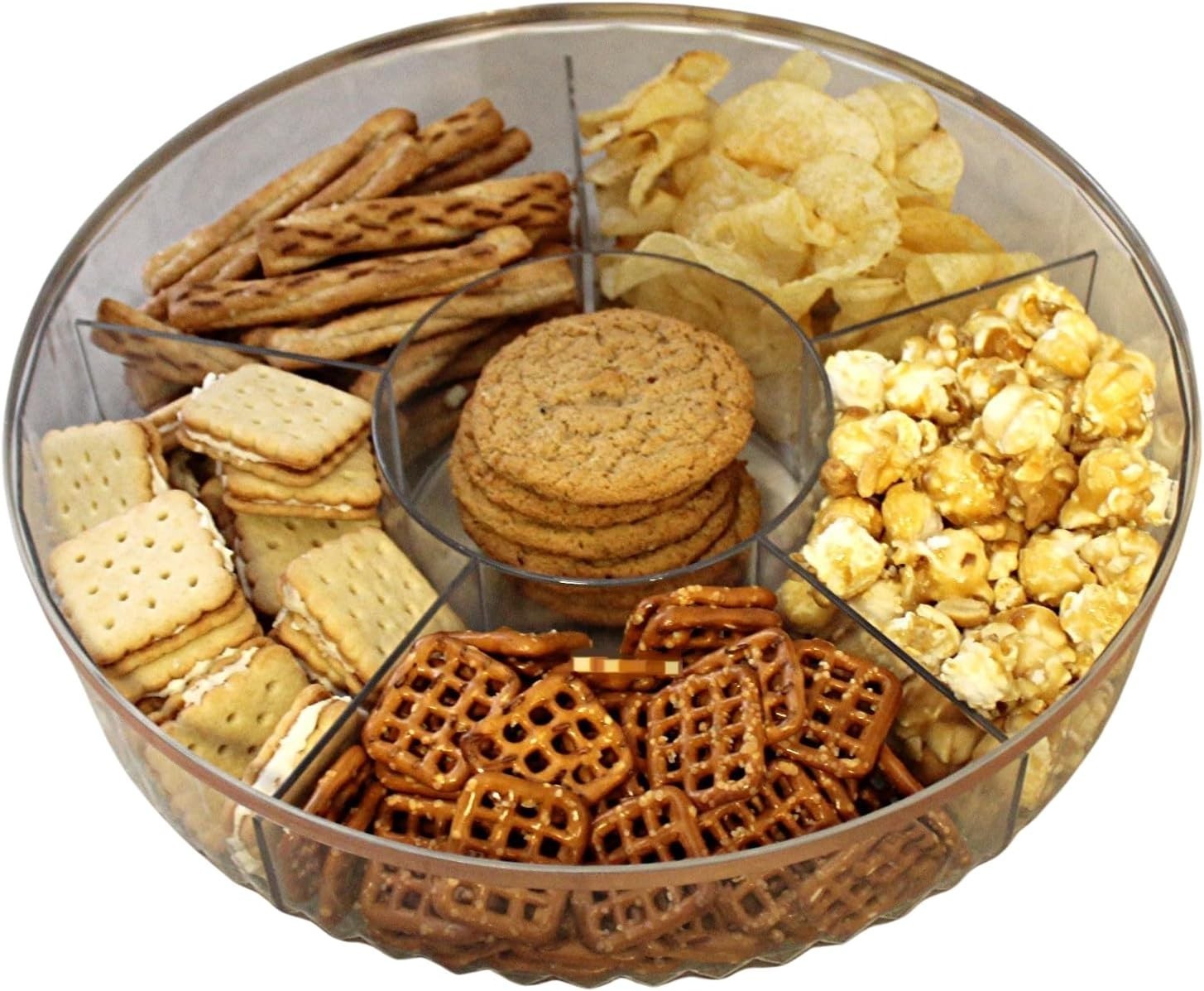 Perfect for candy, fruit, nuts, chips, appetizers, pretzels, desserts, and more, this versatile platter is ideal for parties, weddings, holidays, and family events. A stylish entertaining essential that combines elegance and convenience.