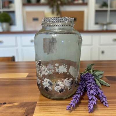 This vase specifically is accented with black and white flowers around the bottom edging, with accents of red included.....cure crystal banding was added to give it some pizzazz...