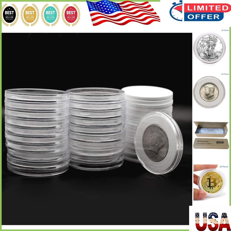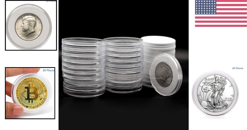 Discover the ultimate solution for showcasing your treasured coins with our Clear Plastic Coin Capsules. This remarkable set of 20 pieces is specifically designed to fit a variety of coins, including the iconic American Silver Eagle, Liberty Coin, JFK Half Dollar, Bitcoin, and more.
